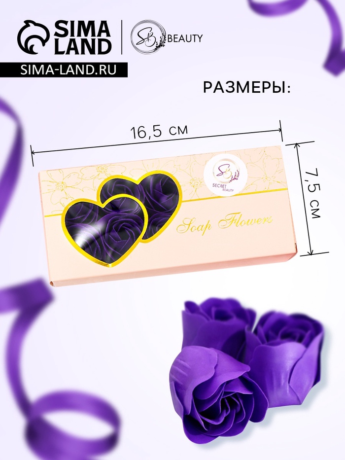 Мыльные розы, фиолетовые, набор 10 шт., в коробке