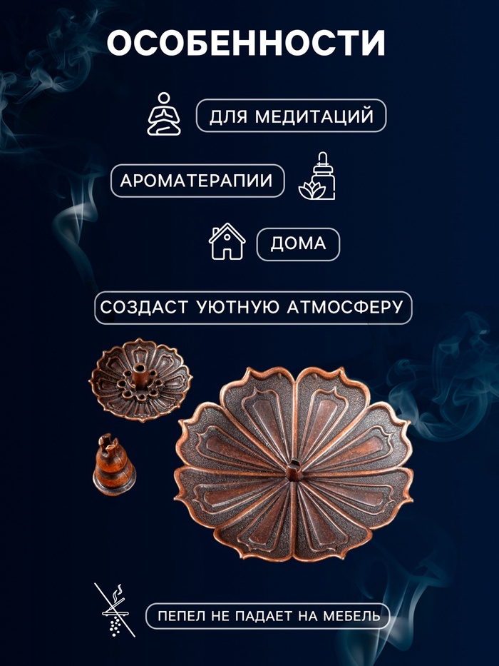 Набор медных подставок для благовоний «Жасмин» станет отличной находкой для любителей ароматерапии и эстетов, ценящих функциональные и стильные аксессуары. Эти металлические подставки с фигурным дизайном подойдут для использования с конусными благовониями, создавая атмосферу уюта и гармонии в вашем доме.