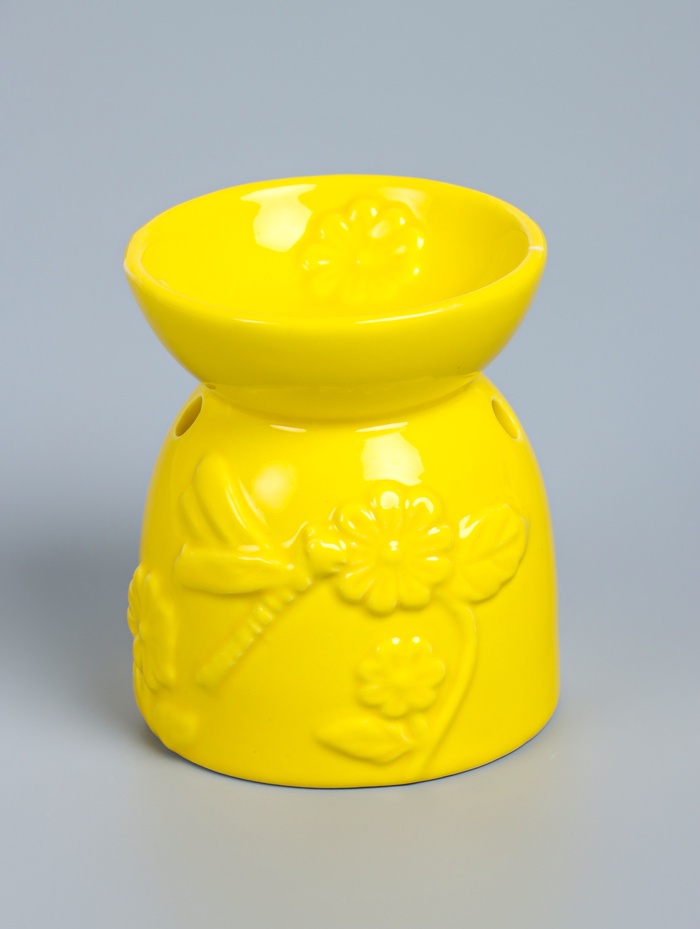 УЦЕНКА Аромалампа керамика «Стрекоза на цветке» жёлтая 7.2×7.2×8.3 см