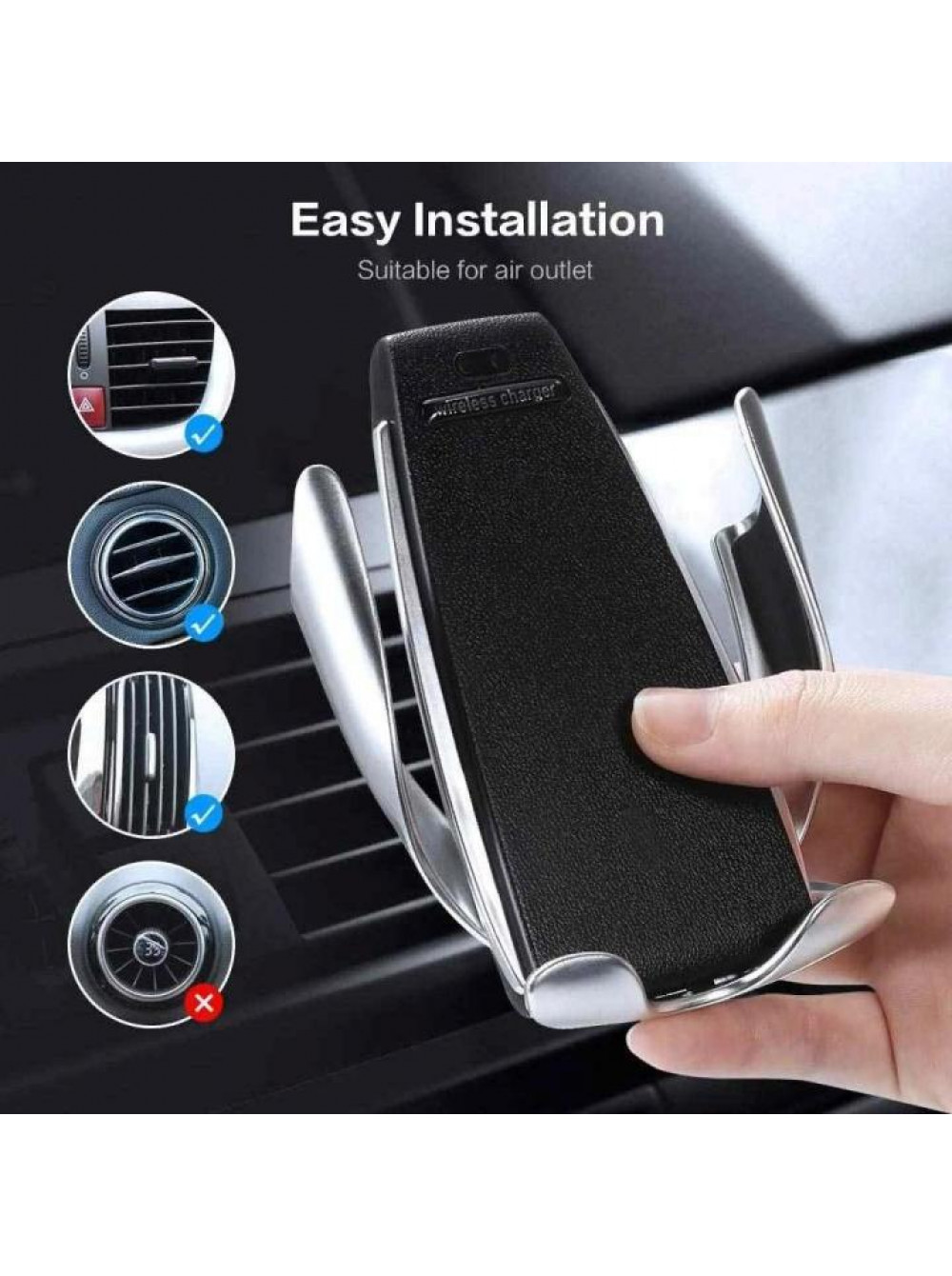 Специальный сенсор. установленный в корпусе держателя самостоятельно раздвинет ручки перед смартфоном. а после надежно захватит. Эта функция позволит не отвлекаться от дороги и не тратить время на установку гаджета в держатель. Penguin S5 устанавливается на решетку воздуховода. посредством специальной прищепки с силиконовым покрытием. предотвращающим скольжение.
