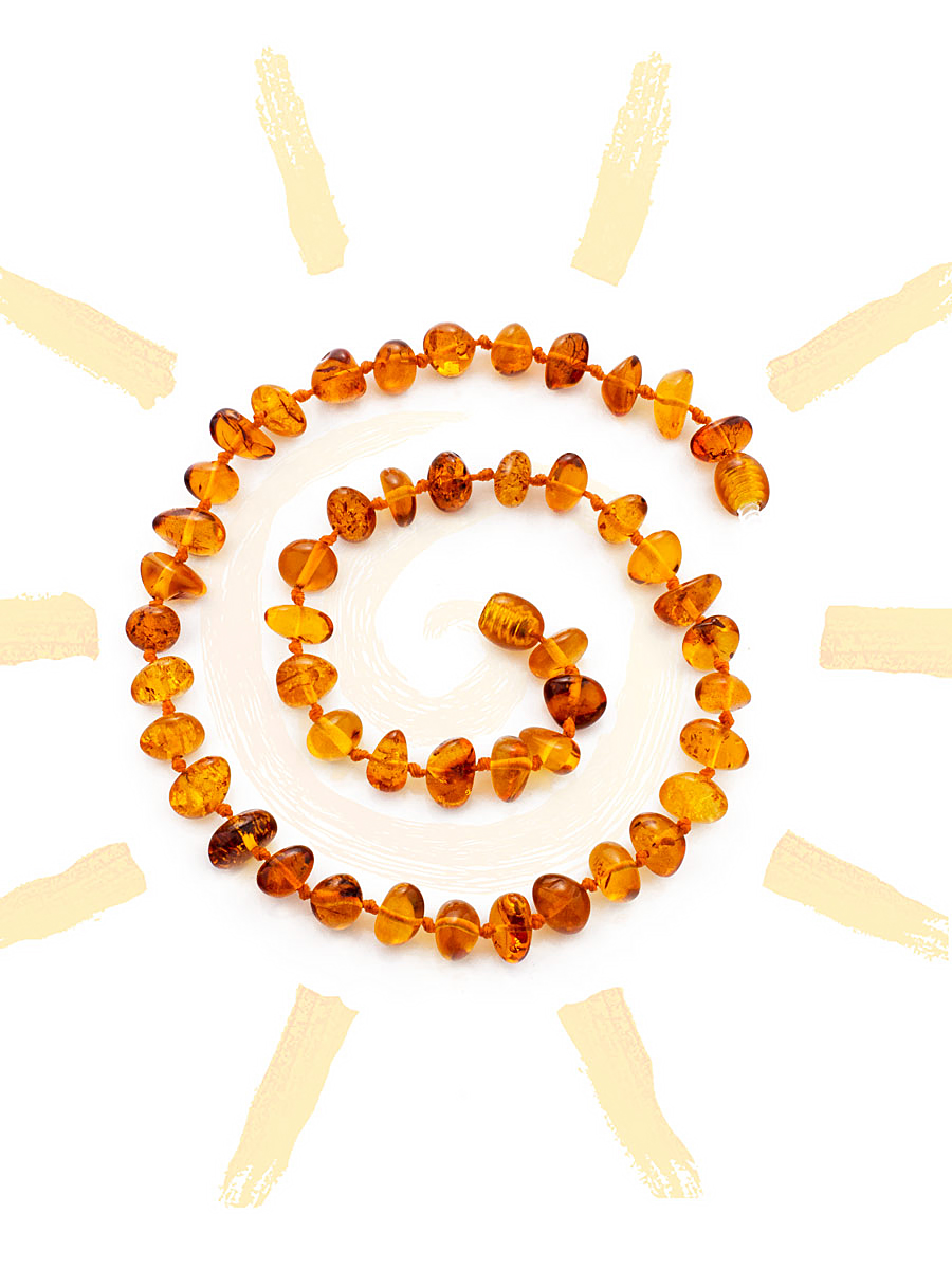 Бусы из натурального янтаря детские «Галька коньячная»