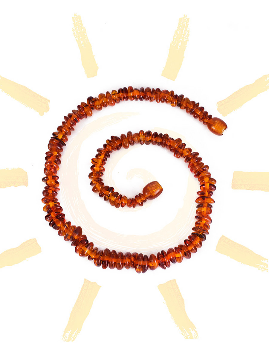 Детские бусы «Галька» из натурального янтаря тёмно-коньячного оттенка