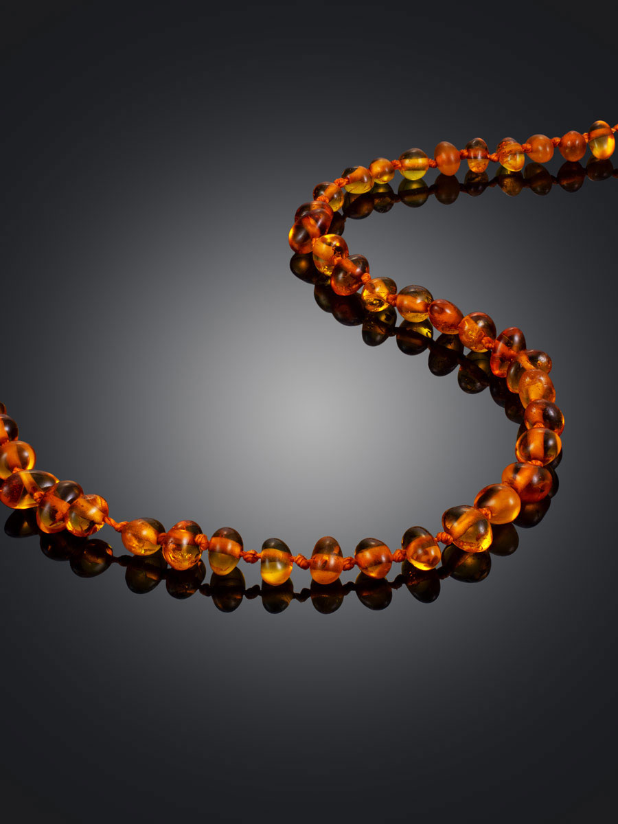 Детские бусы из мелких янтарных бусин «Галька коньячная»