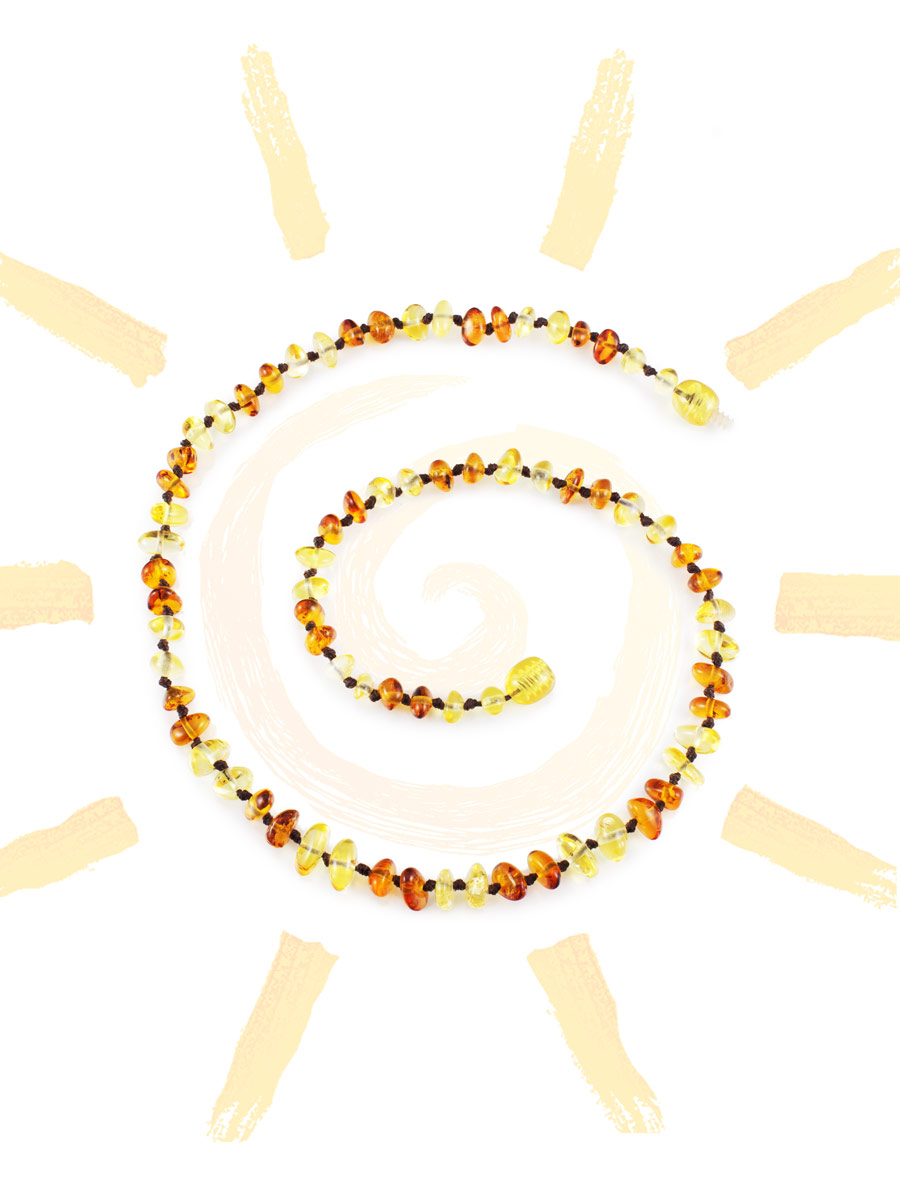 Детские бусы из натурального балтийского янтаря лимонного и коньячного цветов «Галька двухцветная»