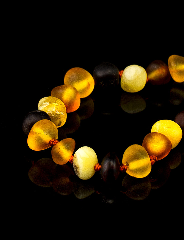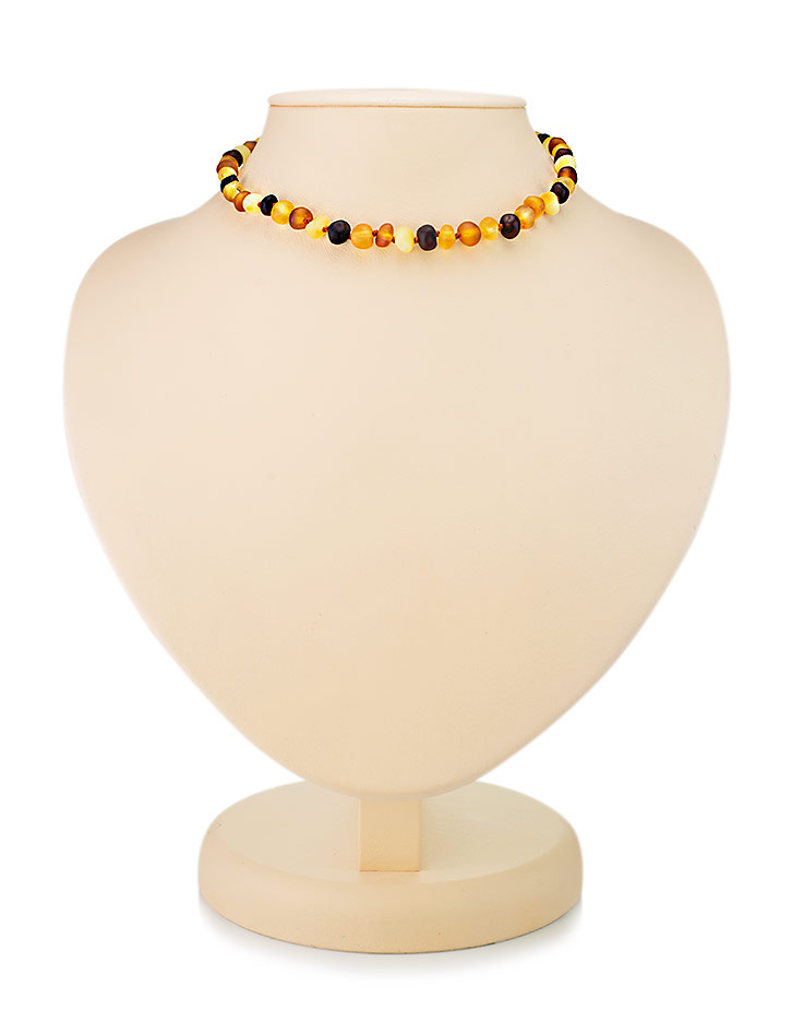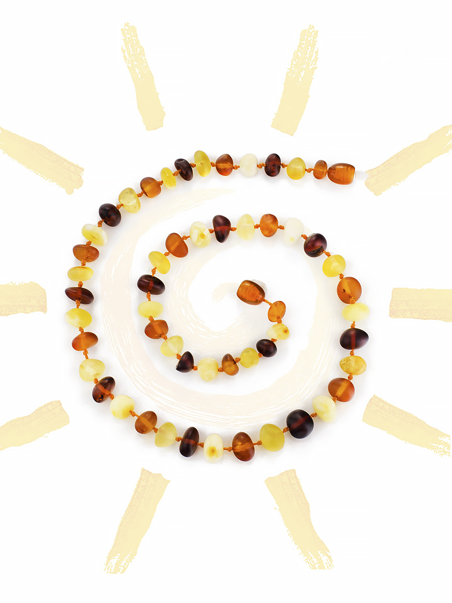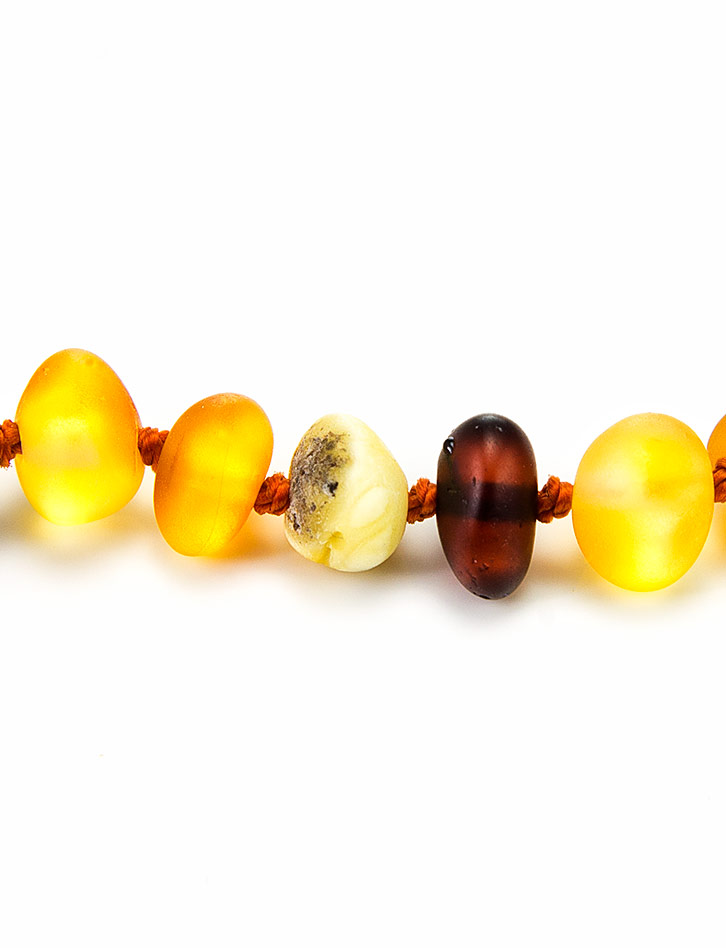 Детские бусы с мягкой шлифовкой из натурального янтаря «Галька пёстрая матовая»