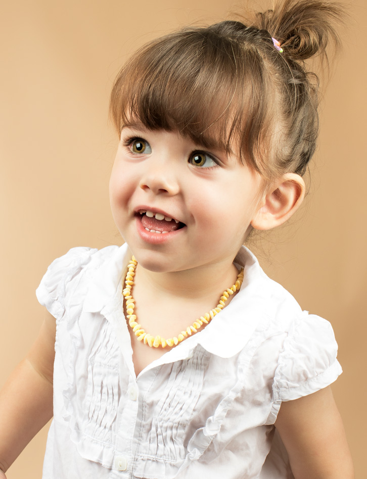 Детские лечебные бусы из натурального балтийского янтаря «Галька медовая»