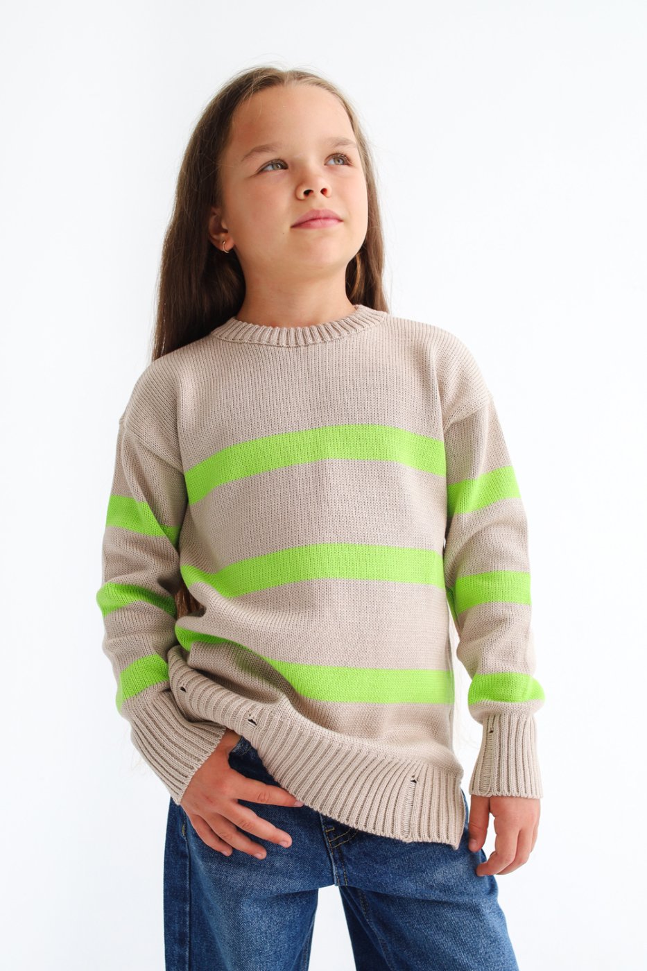 Джемпер детский вязаный Полоска латте-салатовый