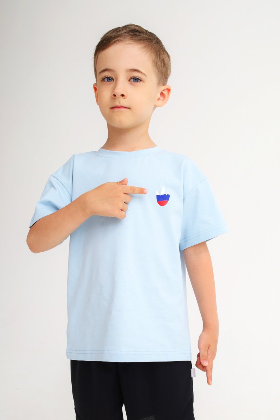 Базовая футболка умеренного объема с округлым вырезом горловины.
