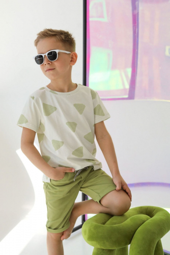 Футболка-фуфайка детская с разрезами принт Треугольники светло-зеленый