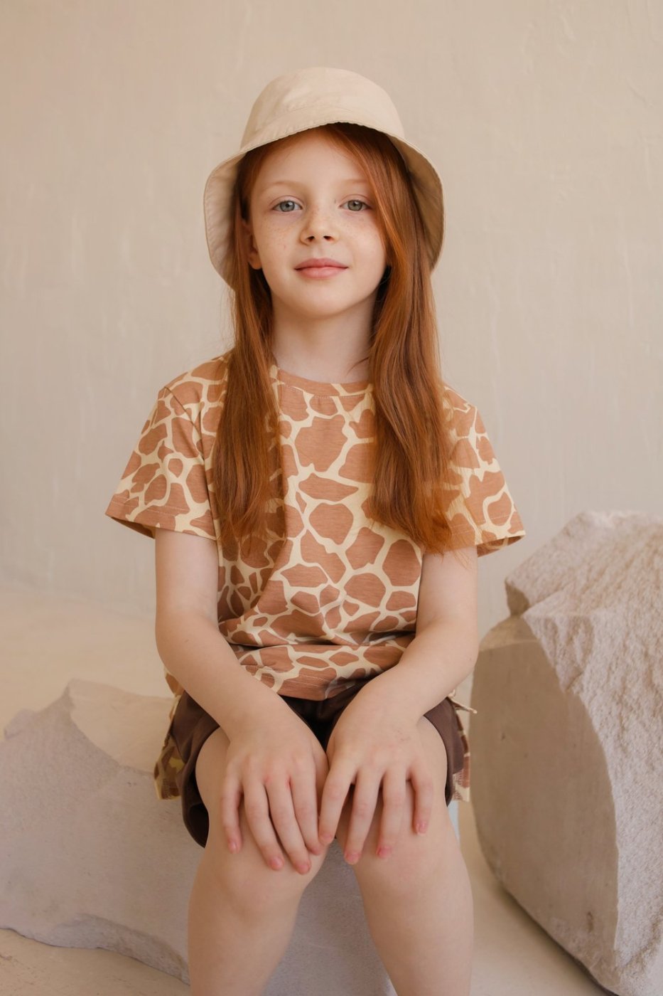 Футболка из принтованной кулирки прямого силуэта с разрезами и удлиненной спинкой.