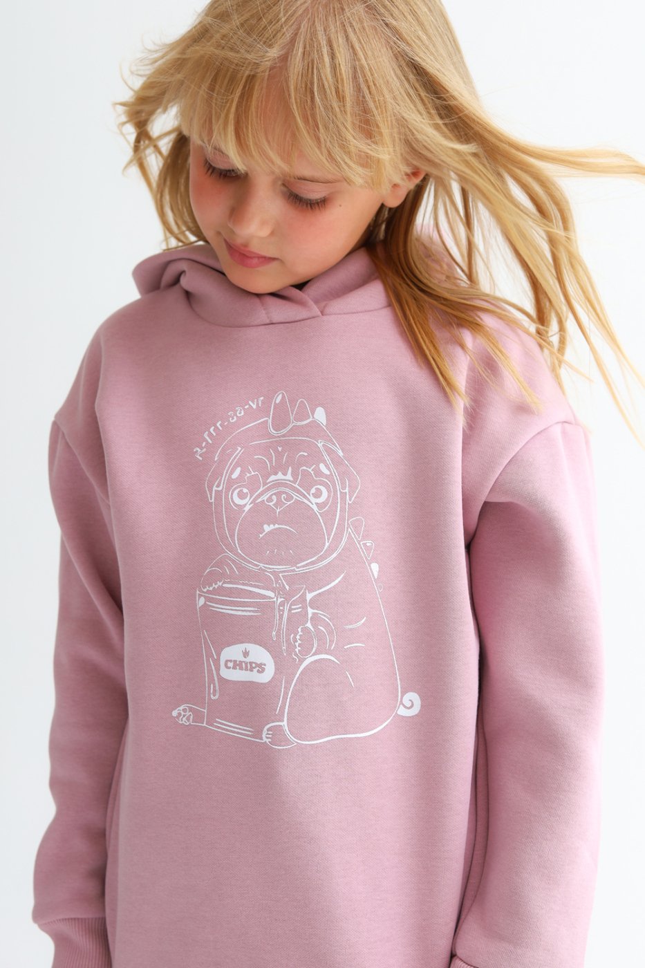 Худи детское принт Мопс пудра