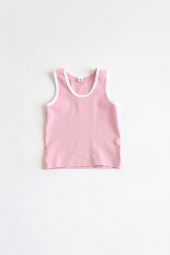 Майка на широких бретельках, без рукавов, округлым вырезом. Не стесняет и не сковывает движений.