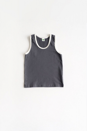 Майка на широких бретельках, без рукавов, округлым вырезом. Не стесняет и не сковывает движений.