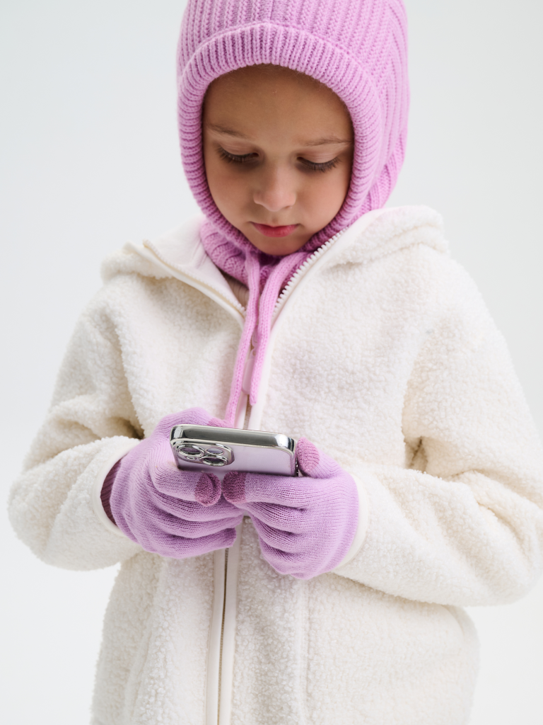 Вязаные перчатки с сенсорными пальцами — удобство и тепло для детей Эти демисезонные вязаные перчатки для мальчиков и девочек выполнены гладью — ровные и эластичные, отлично садятся по руке и сохраняют форму. На указательном и большом пальцах есть вставки с тач-эффектом, которые позволяют пользоваться сенсорными экранами без снятия перчаток. Перчатки хорошо тянутся и обеспечивают комфортную посадку, защищая руки от холода в прохладную погоду. Идеальный выбор среди демисезонных перчаток для детей, сочетающий практичность и стиль.Состав: 90%акрил 8%эластан 2%полиэстерВозрастная группа: KidsСезон: ОсеньГод: 2025Пол: ДетиГодСезон: 2025 ОсеньСтратегия: Товарная категория: Дети аксессуары