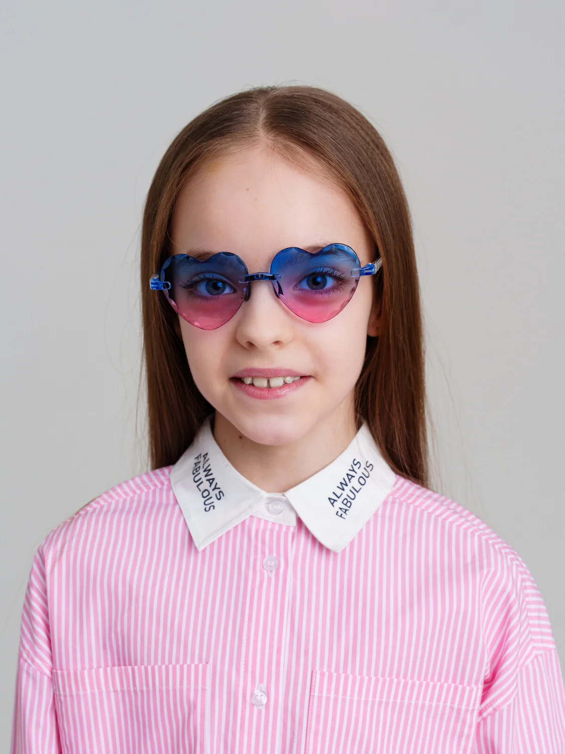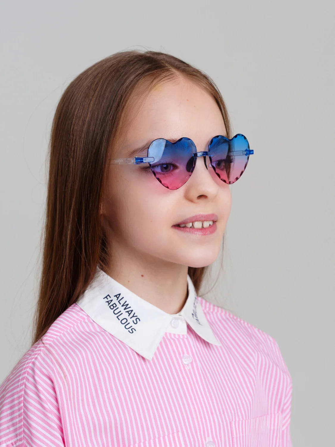 Трендовые очки в форме сердца, облегченные без оправы. Солнцезащитные очки с фильтром Cat3 для девочки подростка. Ширина оправы - 132мм, длина дужки - 140мм. Обхват головы 54-56см. Тёмные фильтры блокируют 85% солнечных лучей. Очки с розовыми линзами хорошо подходят для условий меняющегося освещения (то свет, то тень). Двухцветные градиентные прозрачные линзы не закрывают глаза, а делают их более красивыми. Очки транспортируются в картонной коробке. В комплект входит фирменный текстильный чехол из микрофибры, с помощью которого легко ухаживать за изделием.