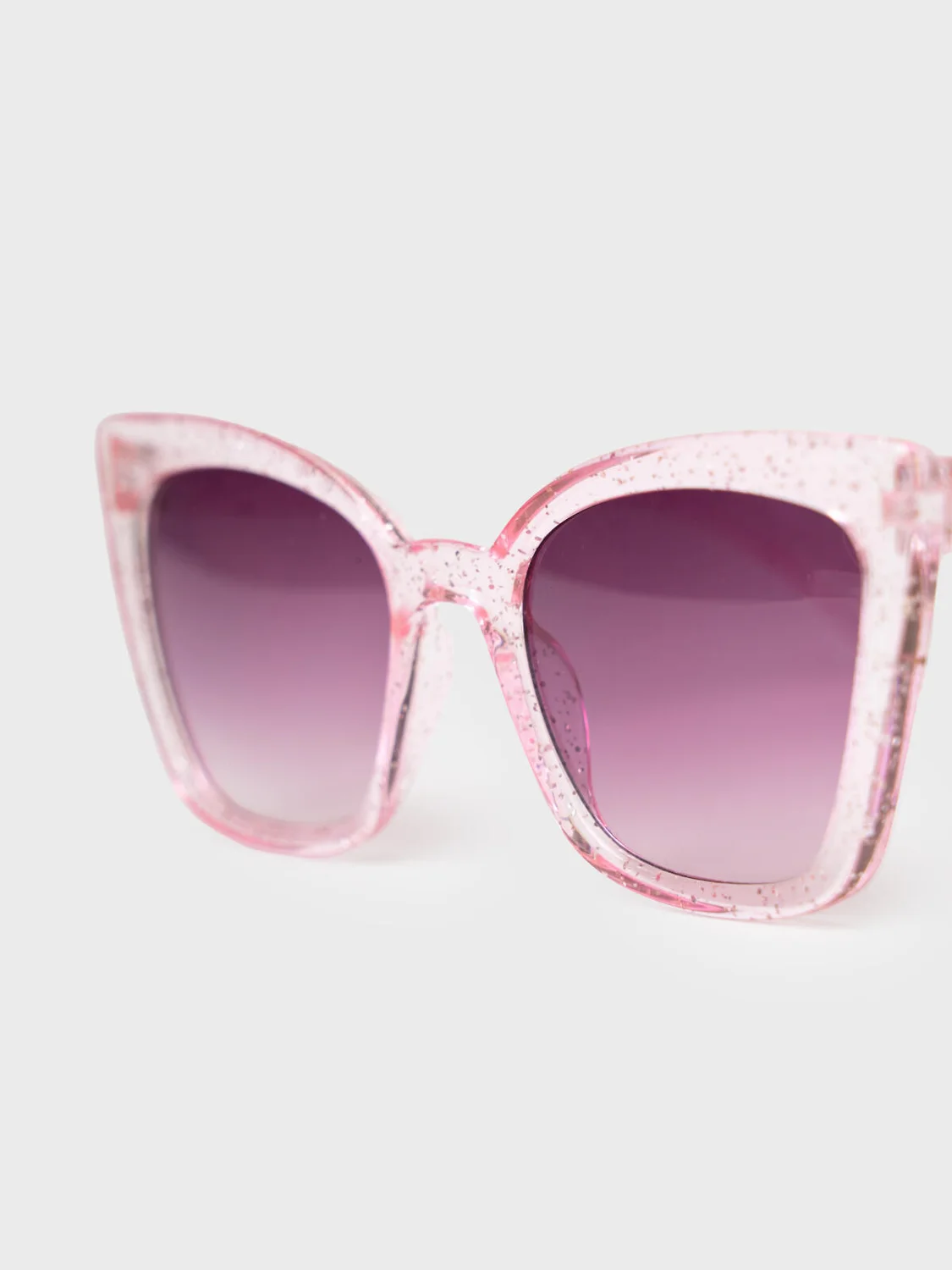 Солнцезащитные очки с прозрачной оправой с блестками для маленьких модниц. Солнцезащитные очки с фильтром Cat3. Затемненные линзы имеют защиту UV400, которая отражает 100% ультрафиолетовых лучей с длиной волны менее 400 нанометров, эффективно блокируя все ультрафиолетовые лучи при солнечном свете. Гибкая, устойчивая к ударам, оправа создана для того, чтобы дети могли активно играть, не беспокойтесь о случайных падениях очков. Небьющиеся акриловые линзы. Ширина оправы - 130 мм, длина дужек - 137 мм. Обхват головы 50-52 см. Такие очки эффективны для защиты глаз в тропиках, у моря и в горах. В комплекте текстильный чехол из микрофибры и им можно легко ухаживать за изделием. Очки транспортируются в картонной коробке.