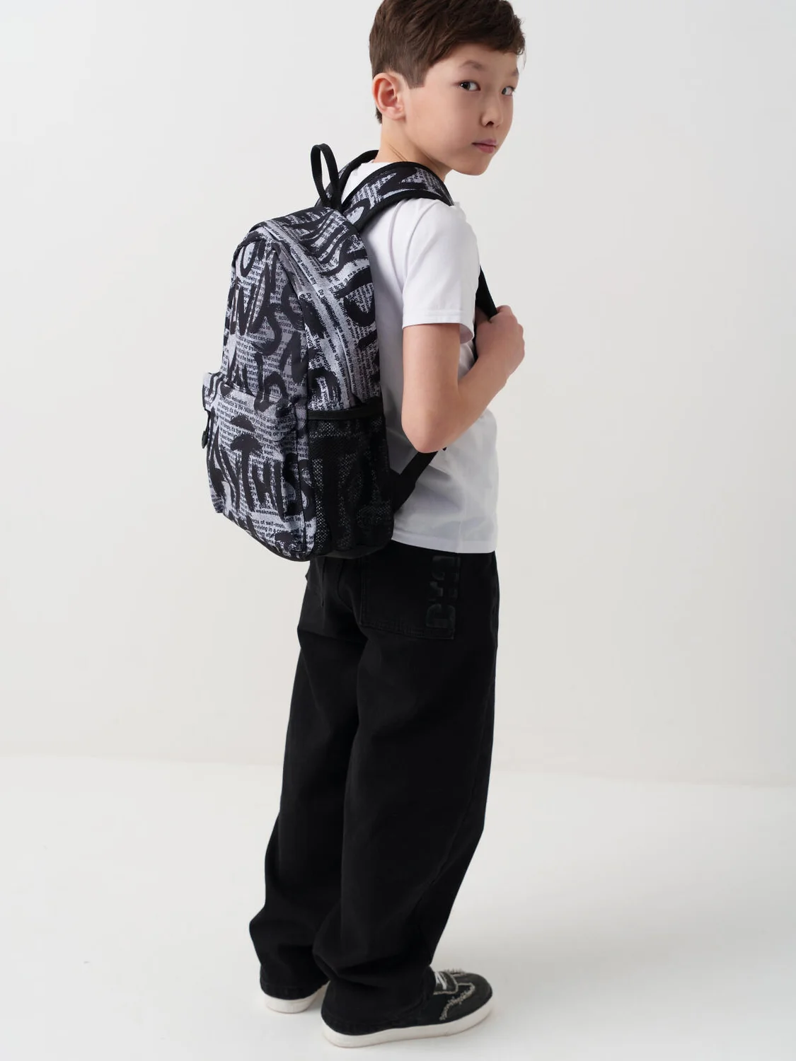 Стильный рюкзак для мальчика-подростка с принтом "газета". Прямые широкие регулируемые лямки с мягкими вкладками и сетчатым покрытием для улучшения вентиляции. Основной отдел на молнии с защитным клапаном. Спереди большой удобный карман на молнии с защитным клапаном, 2 боковых кармана из сетки на резинке. Внутри: отдел для папок, карман на молнии, 2 кармана без замка для телефона. Используется брендированная подкладка. Усиленная спинка и дно. Светоотражающие элементы на плечевых ремнях. Параметры: высота - 40 см, ширина -30 см, глубина - 15 см. Очень легкий
