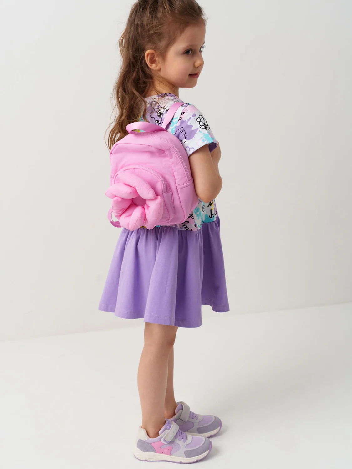 Небольшой рюкзочок с карманом, который украшен объемным большим цветком. Внутри имеется два кармана, один из них на молнии. Лямки рюкзака регулируемые. Параметры рюкзака: высота - 20 см , ширина - 17,5см, глубина - 8 см