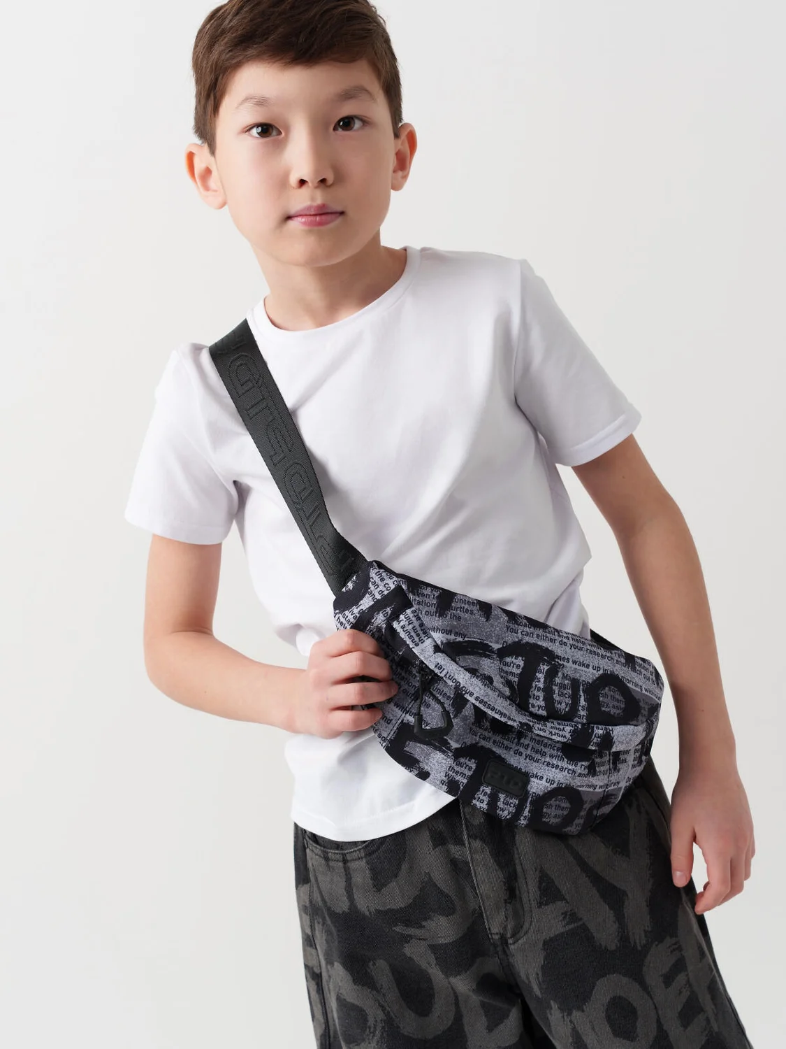 Трендовая сумка кросс-боди для мальчика-подростка. Регулируемый брендированный ремень. Основной отсек на молнии, спереди дополнительный карман на молнии, сзади карман для транспортной карты. Внутри есть карман на молнии. Параметры: высота - 18 см, ширина -13 см, глубина - 6 см.