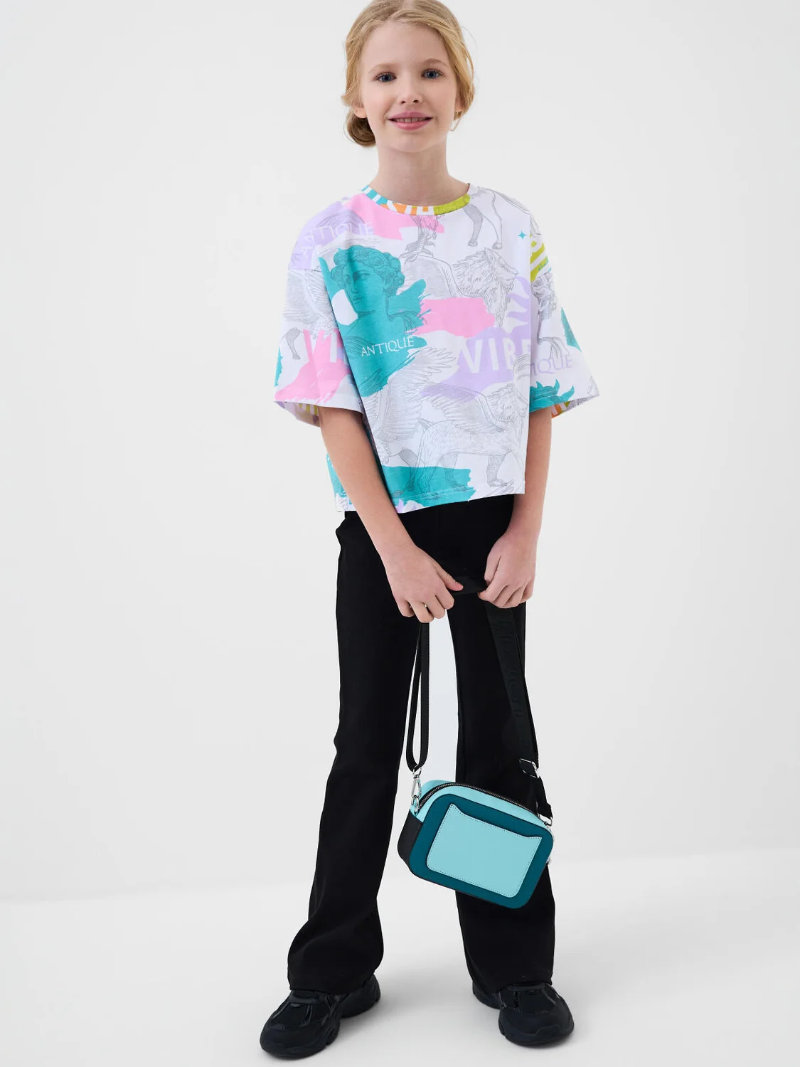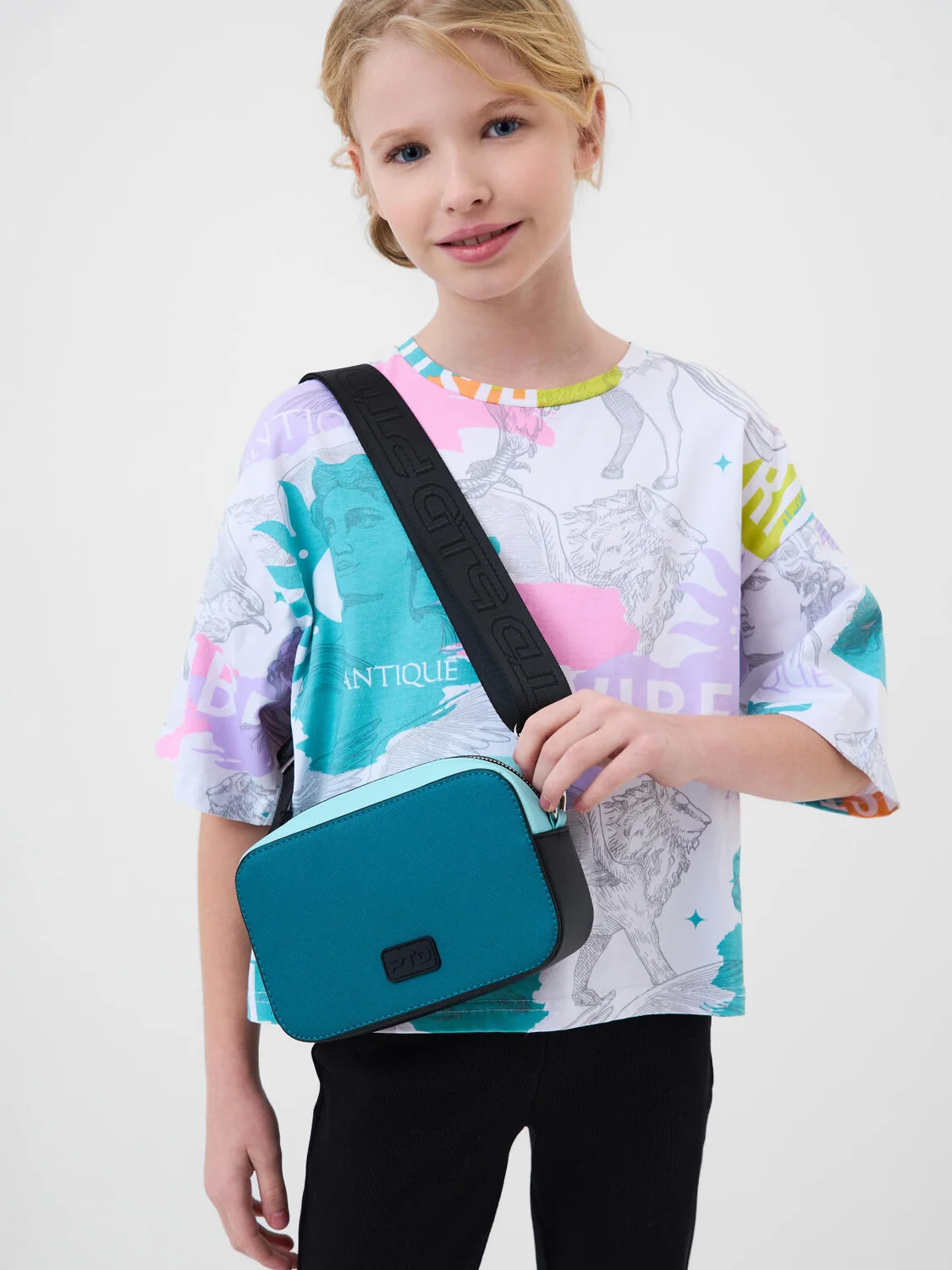 Сумка кросс-боди для девочки-подростка выполнена в стиле колор-блок. В комплекте с сумкой идет картхолдер, который можно носить на шее как украшение. Брендированный ремень регулируется. Основное отделение на молнии, сзади - отделение для транспортной карты, внутри есть карман на молнии. Фирменная брендированная подкладка. Параметры сумки: высота - 12 см, ширина -19 см, глубина - 6 см. Параметры картхолдера: высота - 7 см, ширина -10 см. В подарок идет дополнительный фирменный мешок для сумки (пыльник).