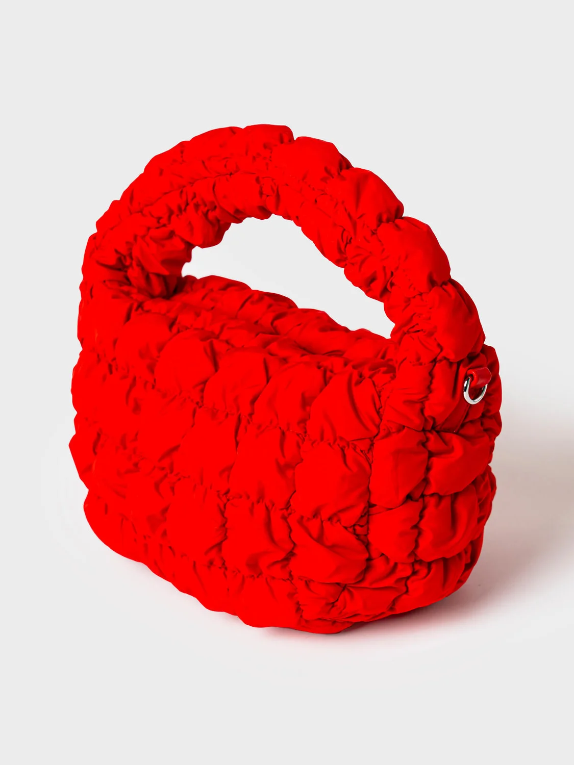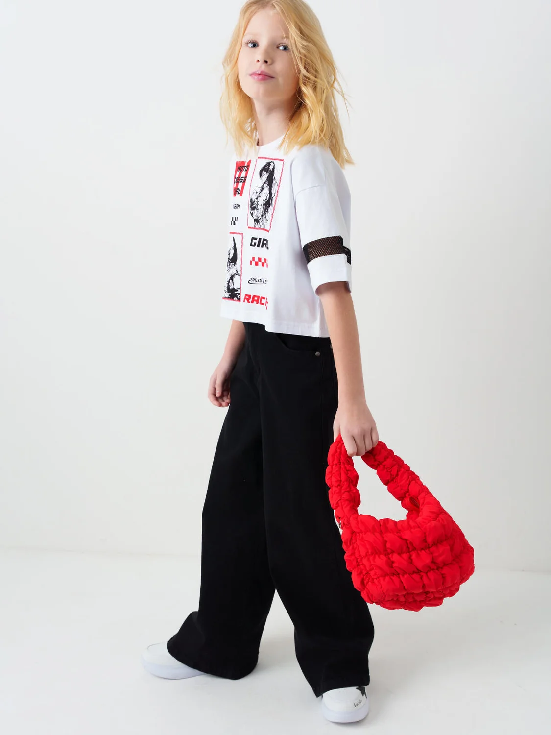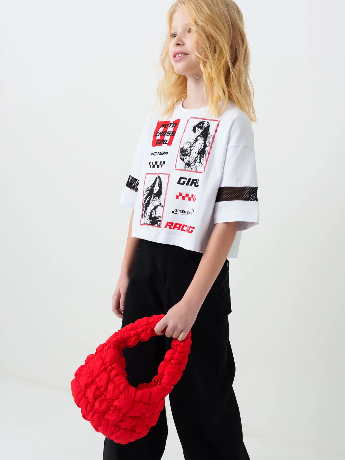 Дутая текстильная круглая сумка кросс-боди для девочки-подростка. Сумка имеет регулируемый плечевой ремень. Основное отделение на молнии. Внутри есть два кармана. Один из них на молнии. Параметры: высота - 14 см, ширина -24 см, глубина - 8 см.