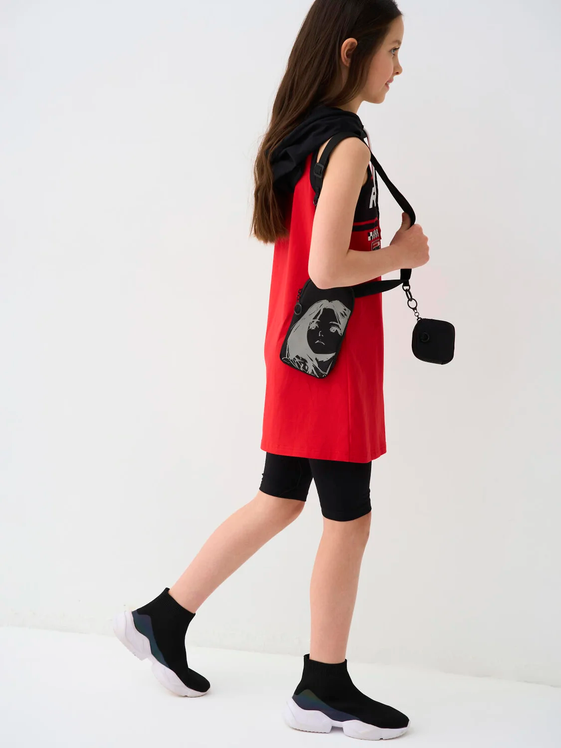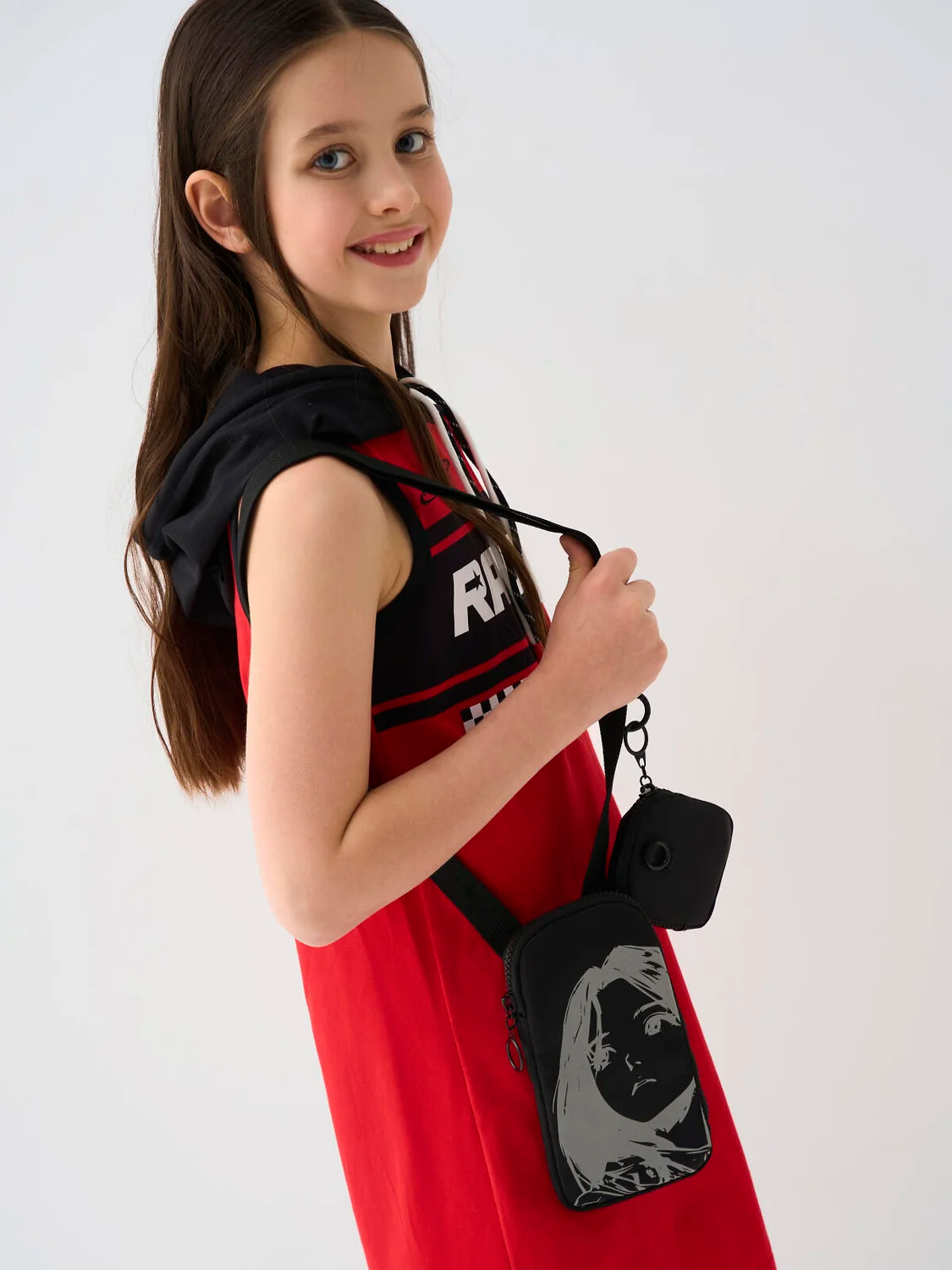 Сумка в корейском стиле для девочки подростка. Стильная текстильная сумка кросс-боди для телефона с чехлом для наушников. Сумка имеет светоотражающий принт. Регулируемый ремень. Основной отсек на молнии. Параметры сумки: высота - 19 см, ширина -10 см, глубина - 2 см. Параметры чехла: высота - 8 см, ширина -8 см, глубина - 1,5 см.