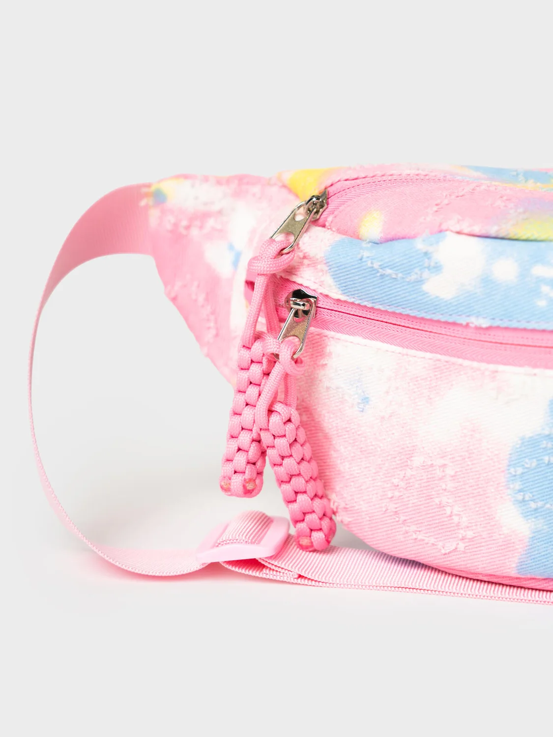 Оригинальная поясная сумка для девочки-подроста. Сумка выполнена из вареный джинсы градиентного окрашивания с эффектом рваности. Сумка имеет одно основное отделение на молнии и карман на молнии спереди. Внутри имеется карман. Регулируемый ремень. Параметры сумки: высота - 16 см, ширина - 38 см, глубина - 6 см