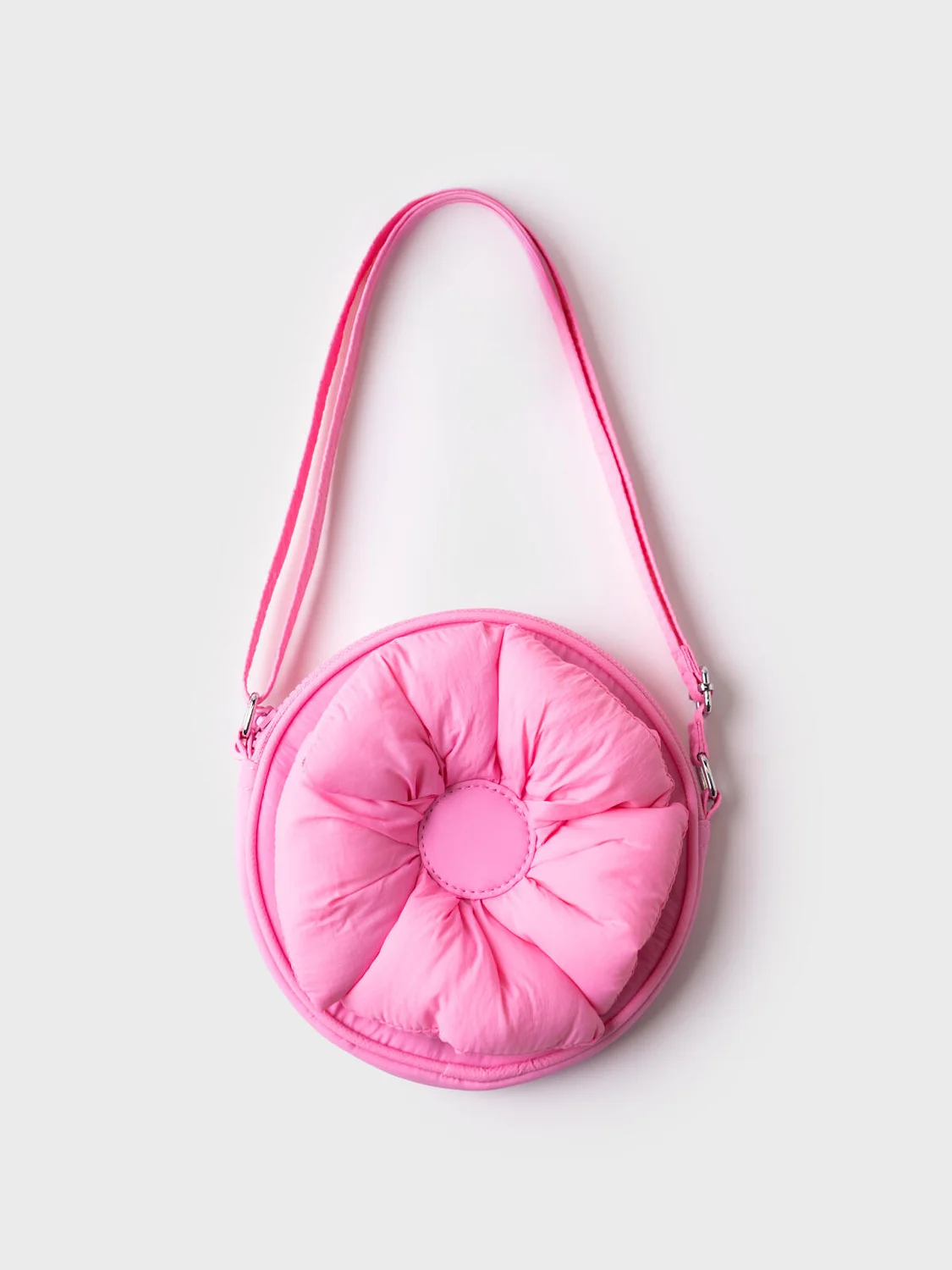Маленькая круглая сумка-цветок будет интересна для маленьких принцесс. Сумка имеет одно отделение, регулируемый плечевой ремешок. Параметры сумки: высота - 17 см , ширина - 17 см, глубина - 3 см