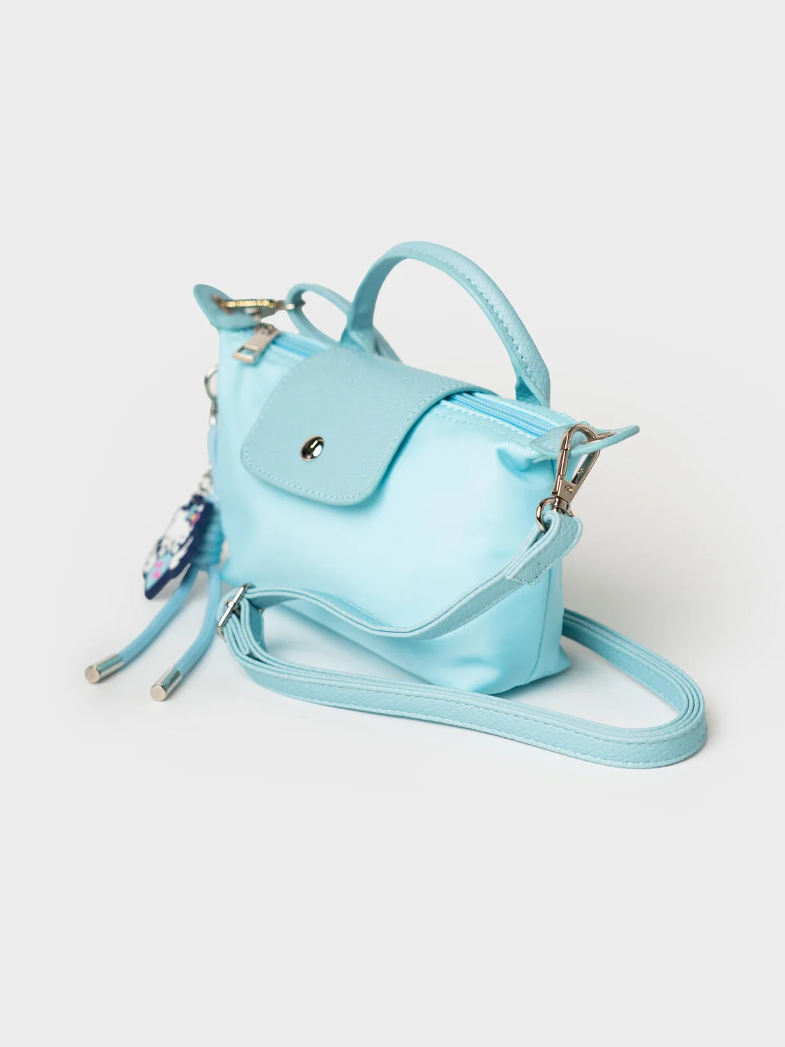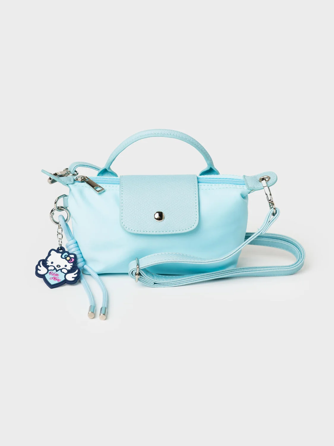 Трендовая мини-сумочка кросс-боди. Сумочка выполнена из нейлона и искусственной кожи. Сумка имеет одно отделение на молнии и сверху закрывается на клапан. Внутри есть карман на молнии. Регулируемый плечевой ремень. Хотя сумочка и выглядит маленькой, она очень вместительная, в ней помещается телефон, ключи, документы и т.п. Сумочка декорирована ярким стильным навесом HELLO KITTY. Параметры сумки: высота - 11 см, ширина - 17 см, глубина - 5,5 см