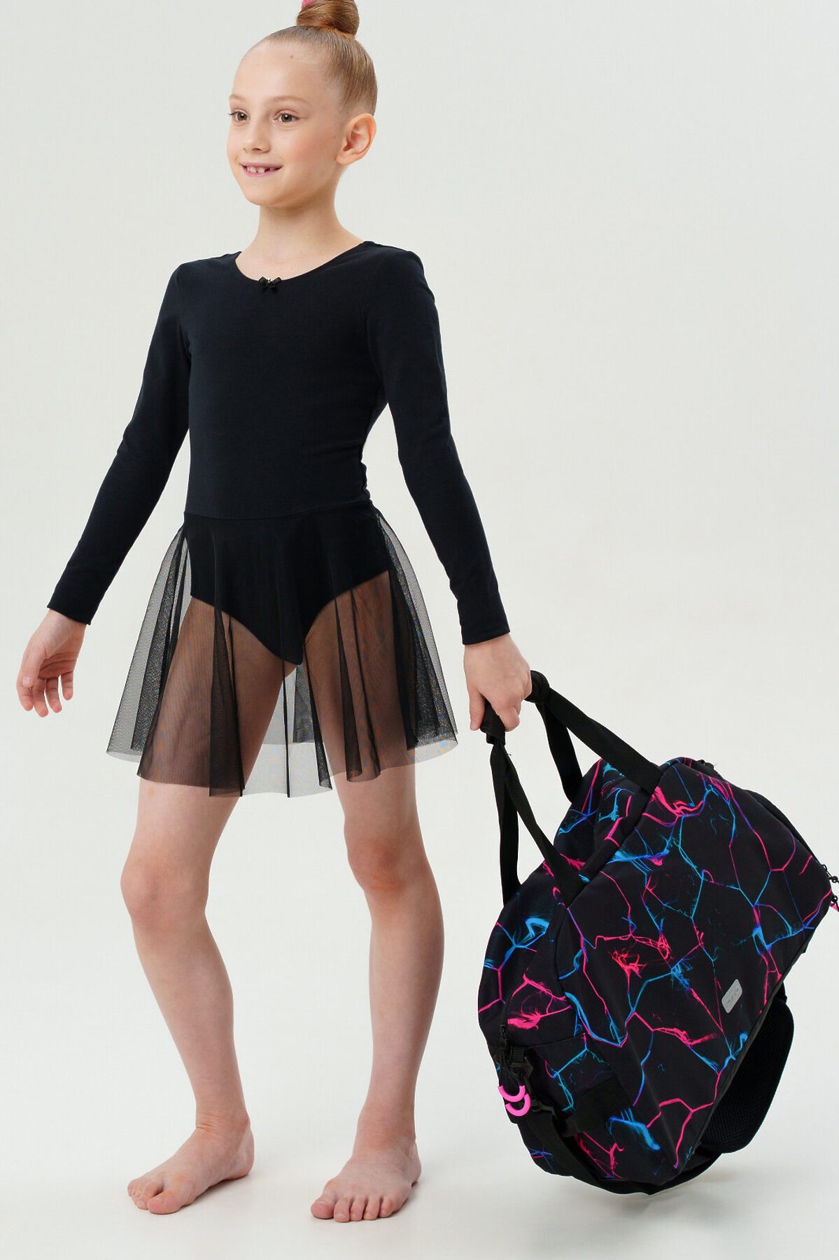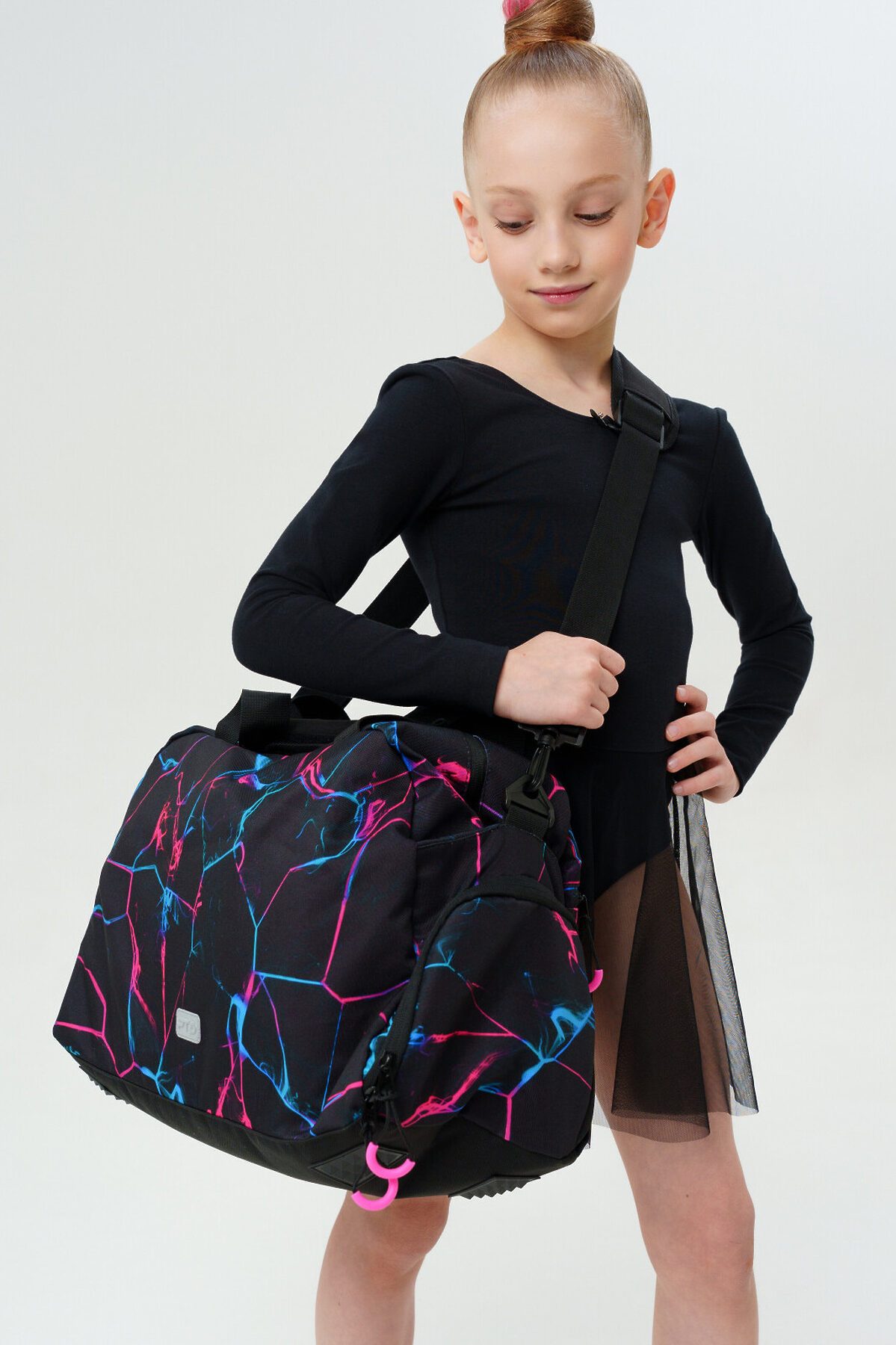 Спортивная сумка для девочки подростка. Сумка текстильная, ручки с креплением, плечевой регулируемый ремень, карман передний на молнии, карман для обуви, внутренний карман на молнии, маленький карман для телефона, проездных документов или карт, светоотражающий патч. Снизу дна имеются резиновые ножки, чтобы низ сумки не пачкался. К сумке можно подобрать гимнастический рюкзак и чехлы для предметов художественной гимнастики в едином дизайне. Размер сумки: 43*28*21 см.