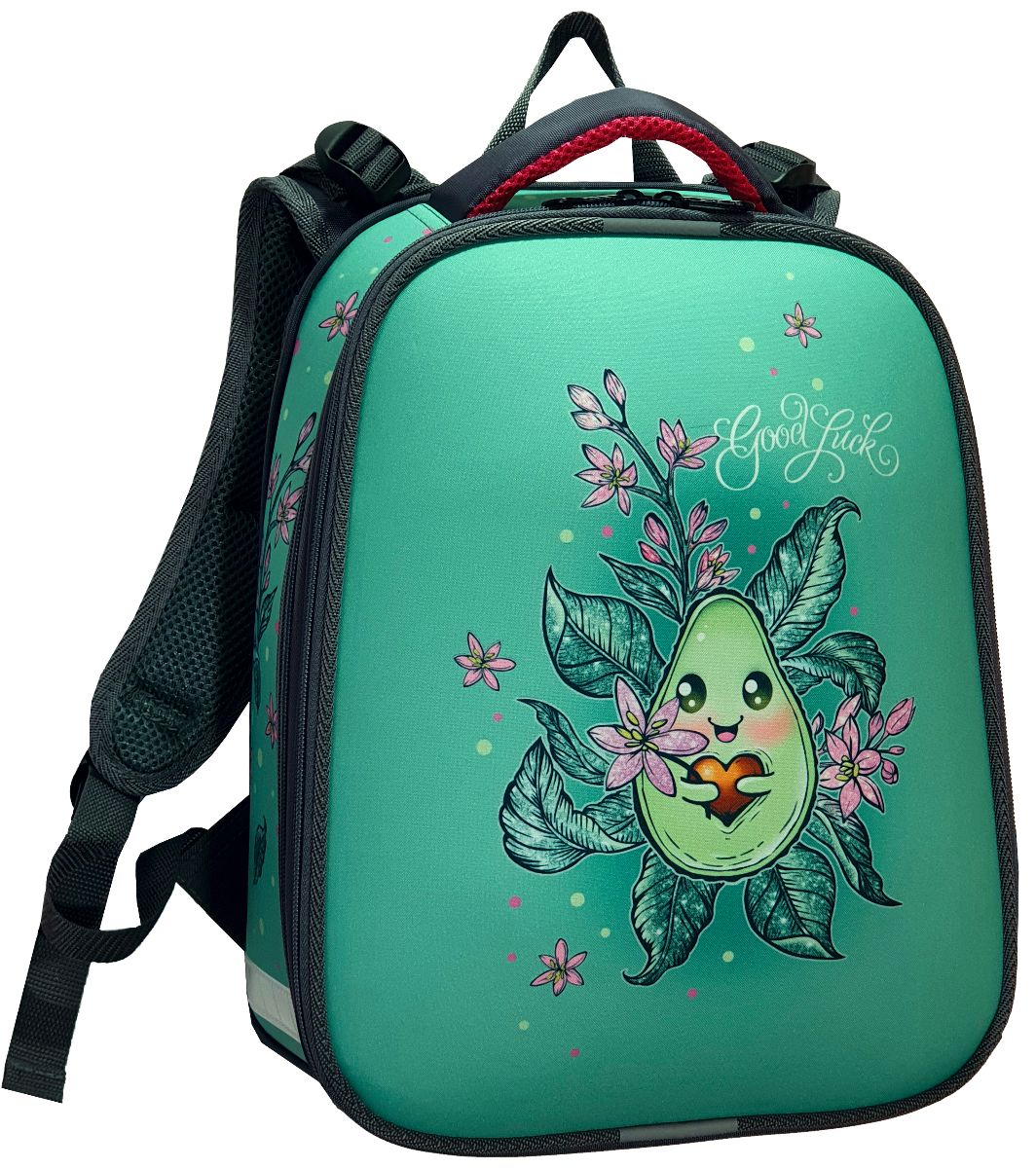 Ранец изготовлен из формованного EVA-материала и высокопрочного непромокаемого полиэстера. Размер 30 х 38 х 16 см. Вес 900 г. Прочные формованные стенки и дно ранца позволяют надежно защитить содержимое от влаги, загрязнений и предотвращают его замятие. Ранец с двумя вместительными отделениями, закрывающимися на реверсивную пластиковую молнию с металлическими «бегунками»; в первом — «плавающие» перегородки для тетрадей и учебников, во втором – большой карман из сетки и карманы-органайзеры для канцелярских принадлежностей. Плотная спинка с анатомическими элементами дополнительно укреплена пластиком, сверху – дышащая трехслойная сетка. Лямки-маечка плотные, мягкие. Регулируются по длине и высоте, что позволяет без труда отрегулировать их по росту ребенка. Ранец снабжен надежным нагрудным фиксатором. Есть удобная мягкая ручка для переноски и дополнительная петлевая ручка для размещения ранца на крюке. На дне ранца есть две пластиковые ножки. В соответствии с требованиями к безопасности на дороге, ранец имеет светоотражающие элементы на лямках и корпусе.