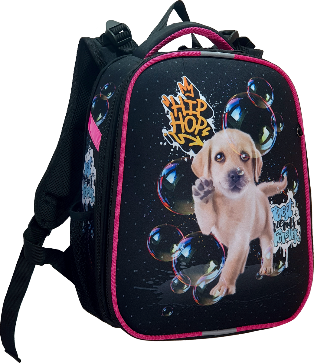 Ранец изготовлен из формованного EVA-материала и высокопрочного непромокаемого полиэстера. Размер 30 х 38 х 16 см. Вес 900 г. Прочные формованные стенки и дно ранца позволяют надежно защитить содержимое от влаги, загрязнений и предотвращают его замятие. Ранец с двумя вместительными отделениями, закрывающимися на реверсивную пластиковую молнию с металлическими «бегунками»; в первом — «плавающие» перегородки для тетрадей и учебников, во втором – большой карман из сетки и карманы-органайзеры для канцелярских принадлежностей. Плотная спинка с анатомическими элементами дополнительно укреплена пластиком, сверху – дышащая трехслойная сетка. Лямки-маечка плотные, мягкие. Регулируются по длине и высоте, что позволяет без труда отрегулировать их по росту ребенка. Ранец снабжен надежным нагрудным фиксатором и двумя боковыми карманами из прочной сетки. Есть удобная мягкая ручка для переноски и дополнительная петлевая ручка для размещения ранца на крюке. На дне ранца есть две пластиковые ножки. В соответствии с требованиями к безопасности на дороге, ранец имеет светоотражающие элементы на лямках и корпусе. Приятный бонус — колечко-подвес для брелока. Брелок также прилагается.*