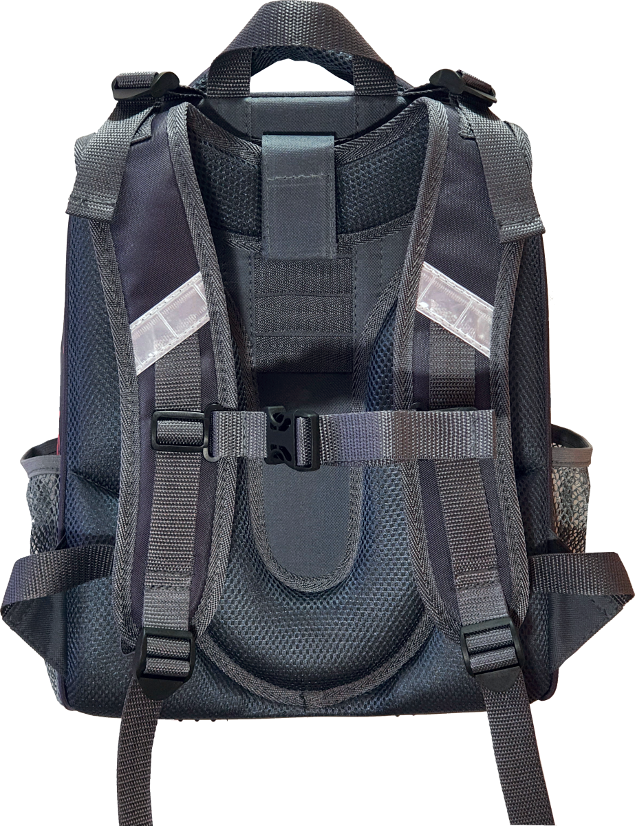 Ранец изготовлен из формованного EVA-материала и высокопрочного непромокаемого полиэстера. Размер 30 х 38 х 16 см. Вес 900 г. Прочные формованные стенки и дно ранца позволяют надежно защитить содержимое от влаги, загрязнений и предотвращают его замятие. Ранец с двумя вместительными отделениями, закрывающимися на реверсивную пластиковую молнию с металлическими «бегунками»; в первом — «плавающие» перегородки для тетрадей и учебников, во втором – большой карман из сетки и карманы-органайзеры для канцелярских принадлежностей. Плотная спинка с анатомическими элементами дополнительно укреплена пластиком, сверху – дышащая трехслойная сетка. Лямки-маечка плотные, мягкие. Регулируются по длине и высоте, что позволяет без труда отрегулировать их по росту ребенка. Ранец снабжен надежным нагрудным фиксатором и двумя боковыми карманами из прочной сетки. Есть удобная мягкая ручка для переноски и дополнительная петлевая ручка для размещения ранца на крюке. На дне ранца есть две пластиковые ножки. В соответствии с требованиями к безопасности на дороге, ранец имеет светоотражающие элементы на лямках и корпусе. Приятный бонус — колечко-подвес для брелока. Брелок также прилагается.*