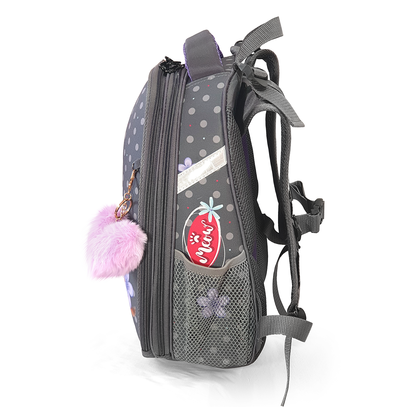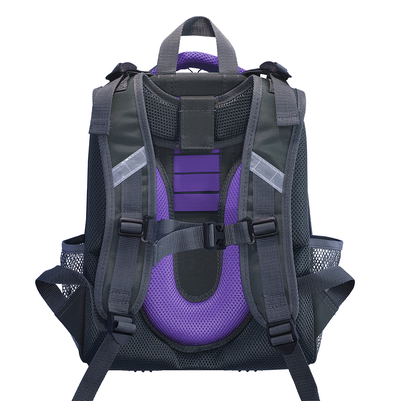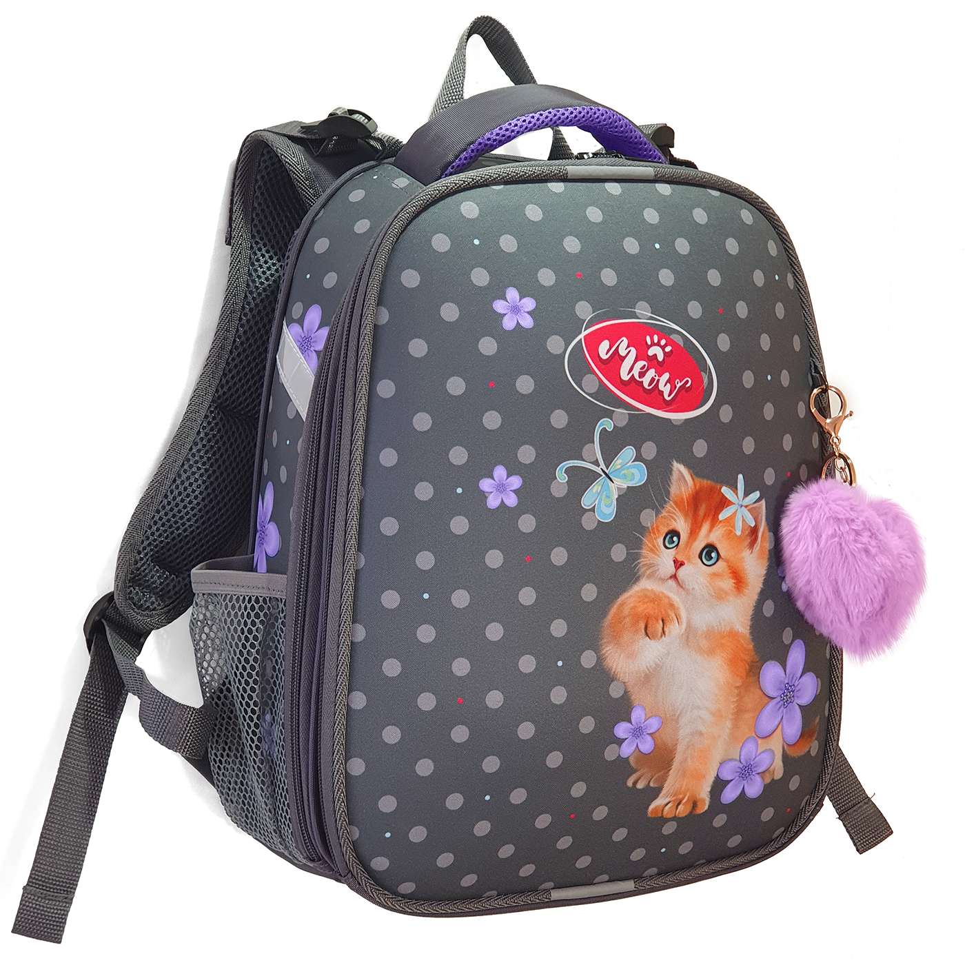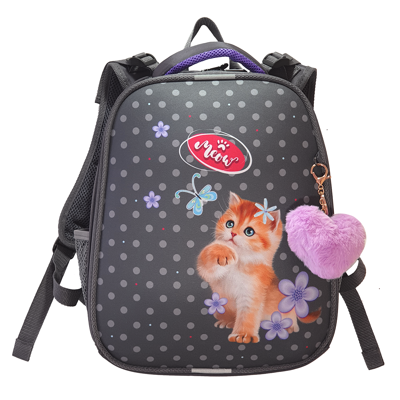 Ранец изготовлен из формованного EVA-материала и высокопрочного непромокаемого полиэстера. Размер 30 х 38 х 16 см. Вес 900 г. Прочные формованные стенки и дно ранца позволяют надежно защитить содержимое от влаги, загрязнений и предотвращают его замятие. Ранец с двумя вместительными отделениями, закрывающимися на реверсивную пластиковую молнию с металлическими «бегунками»; в первом — «плавающие» перегородки для тетрадей и учебников, во втором – большой карман из сетки и карманы-органайзеры для канцелярских принадлежностей. Плотная спинка с анатомическими элементами дополнительно укреплена пластиком, сверху – дышащая трехслойная сетка. Лямки-маечка плотные, мягкие. Регулируются по длине и высоте, что позволяет без труда отрегулировать их по росту ребенка. Ранец снабжен надежным нагрудным фиксатором и двумя боковыми карманами из прочной сетки. Есть удобная мягкая ручка для переноски и дополнительная петлевая ручка для размещения ранца на крюке. На дне ранца есть две пластиковые ножки. В соответствии с требованиями к безопасности на дороге, ранец имеет светоотражающие элементы на лямках и корпусе. Приятный бонус — колечко-подвес для брелока. Брелок также прилагается.*