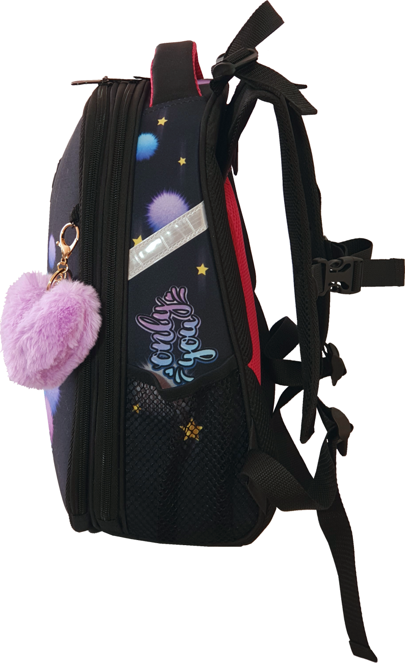 Ранец изготовлен из формованного EVA-материала и высокопрочного непромокаемого полиэстера. Размер 30 х 38 х 16 см. Вес 900 г. Прочные формованные стенки и дно ранца позволяют надежно защитить содержимое от влаги, загрязнений и предотвращают его замятие. Ранец с двумя вместительными отделениями, закрывающимися на реверсивную пластиковую молнию с металлическими «бегунками»; в первом — «плавающие» перегородки для тетрадей и учебников, во втором – большой карман из сетки и карманы-органайзеры для канцелярских принадлежностей. Плотная спинка с анатомическими элементами дополнительно укреплена пластиком, сверху – дышащая трехслойная сетка. Лямки-маечка плотные, мягкие. Регулируются по длине и высоте, что позволяет без труда отрегулировать их по росту ребенка. Ранец снабжен надежным нагрудным фиксатором и двумя боковыми карманами из прочной сетки. Есть удобная мягкая ручка для переноски и дополнительная петлевая ручка для размещения ранца на крюке. На дне ранца есть две пластиковые ножки. В соответствии с требованиями к безопасности на дороге, ранец имеет светоотражающие элементы на лямках и корпусе. Приятный бонус — колечко-подвес для брелока. Брелок также прилагается.*