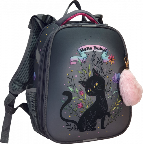 Ранец изготовлен из формованного EVA-материала и высокопрочного непромокаемого полиэстера. Размер 30 х 38 х 16 см. Вес 900 г. Прочные формованные стенки и дно ранца позволяют надежно защитить содержимое от влаги, загрязнений и предотвращают его замятие. Ранец с двумя вместительными отделениями, закрывающимися на реверсивную пластиковую молнию с металлическими «бегунками»; в первом — «плавающие» перегородки для тетрадей и учебников, во втором – большой карман из сетки и карманы-органайзеры для канцелярских принадлежностей. Плотная спинка с анатомическими элементами дополнительно укреплена пластиком, сверху – дышащая трехслойная сетка. Лямки-маечка плотные, мягкие. Регулируются по длине и высоте, что позволяет без труда отрегулировать их по росту ребенка. Ранец снабжен надежным нагрудным фиксатором и двумя боковыми карманами из прочной сетки. Есть удобная мягкая ручка для переноски и дополнительная петлевая ручка для размещения ранца на крюке. На дне ранца есть две пластиковые ножки. В соответствии с требованиями к безопасности на дороге, ранец имеет светоотражающие элементы на лямках и корпусе. Приятный бонус — колечко-подвес для брелока. Брелок также прилагается.* *Брелок может отличаться от представленного на фото. Вес: 900 g