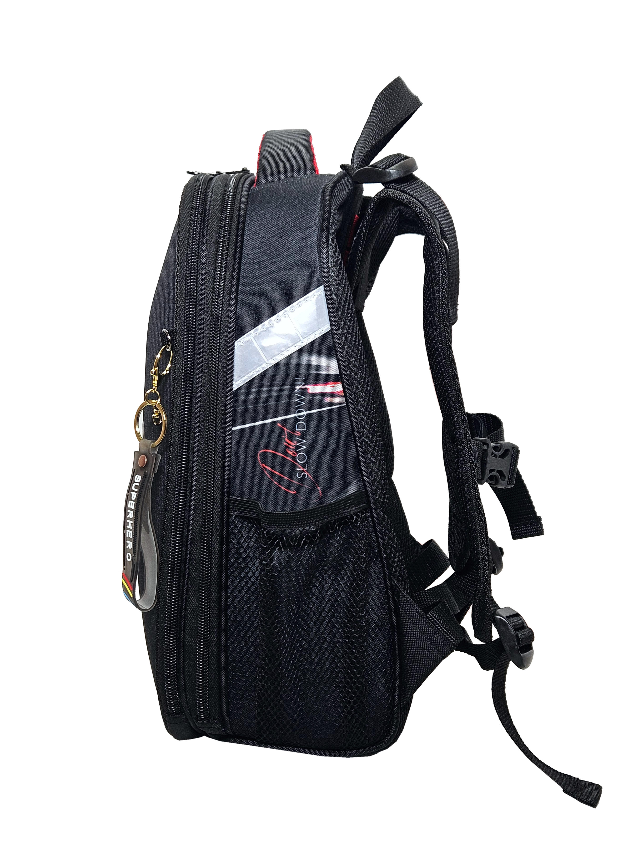 Ранец изготовлен из формованного EVA-материала и высокопрочного непромокаемого полиэстера. Размер 30 х 38 х 16 см. Вес 900 г. Прочные формованные стенки и дно ранца позволяют надежно защитить содержимое от влаги, загрязнений и предотвращают его замятие. Ранец с двумя вместительными отделениями, закрывающимися на реверсивную пластиковую молнию с металлическими «бегунками»; в первом — «плавающие» перегородки для тетрадей и учебников, во втором – большой карман из сетки и карманы-органайзеры для канцелярских принадлежностей. Плотная спинка с анатомическими элементами дополнительно укреплена пластиком, сверху – дышащая трехслойная сетка. Лямки-маечка плотные, мягкие. Регулируются по длине и высоте, что позволяет без труда отрегулировать их по росту ребенка. Ранец снабжен надежным нагрудным фиксатором и двумя боковыми карманами из прочной сетки. Есть удобная мягкая ручка для переноски и дополнительная петлевая ручка для размещения ранца на крюке. На дне ранца есть две пластиковые ножки. В соответствии с требованиями к безопасности на дороге, ранец имеет светоотражающие элементы на лямках и корпусе. Приятный бонус — колечко-подвес для брелока. Брелок также прилагается.*