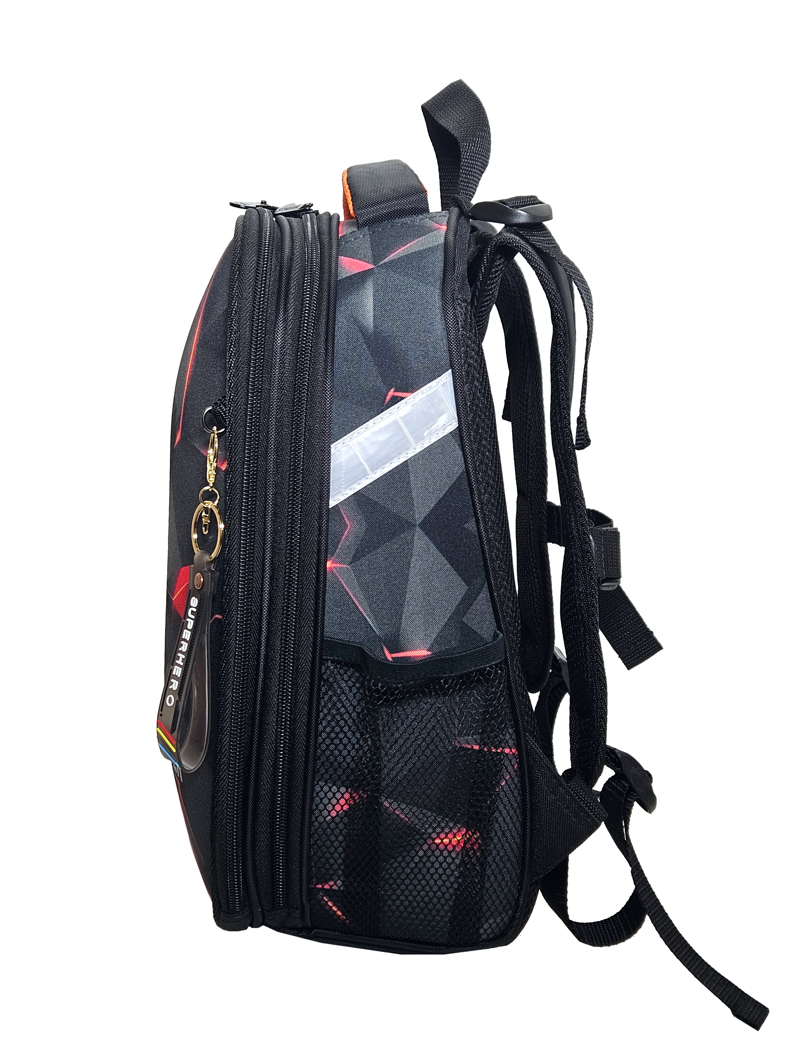 Ранец изготовлен из формованного EVA-материала и высокопрочного непромокаемого полиэстера. Размер 30 х 38 х 16 см. Вес 900 г. Прочные формованные стенки и дно ранца позволяют надежно защитить содержимое от влаги, загрязнений и предотвращают его замятие. Ранец с двумя вместительными отделениями, закрывающимися на реверсивную пластиковую молнию с металлическими «бегунками»; в первом — «плавающие» перегородки для тетрадей и учебников, во втором – большой карман из сетки и карманы-органайзеры для канцелярских принадлежностей. Плотная спинка с анатомическими элементами дополнительно укреплена пластиком, сверху – дышащая трехслойная сетка. Лямки-маечка плотные, мягкие. Регулируются по длине и высоте, что позволяет без труда отрегулировать их по росту ребенка. Ранец снабжен надежным нагрудным фиксатором и двумя боковыми карманами из прочной сетки. Есть удобная мягкая ручка для переноски и дополнительная петлевая ручка для размещения ранца на крюке. На дне ранца есть две пластиковые ножки. В соответствии с требованиями к безопасности на дороге, ранец имеет светоотражающие элементы на лямках и корпусе. Приятный бонус — колечко-подвес для брелока. Брелок также прилагается.*