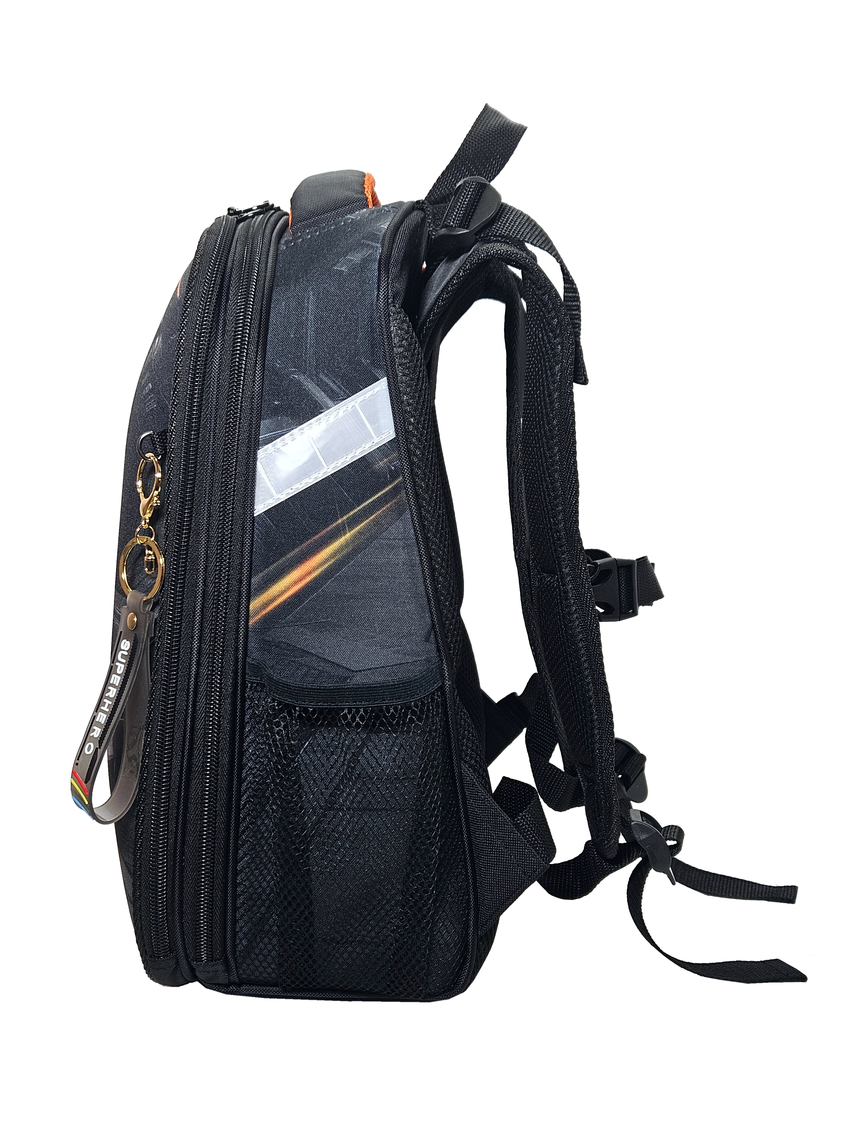 Ранец изготовлен из формованного EVA-материала и высокопрочного непромокаемого полиэстера. Размер 30 х 38 х 16 см. Вес 900 г. Прочные формованные стенки и дно ранца позволяют надежно защитить содержимое от влаги, загрязнений и предотвращают его замятие. Ранец с двумя вместительными отделениями, закрывающимися на реверсивную пластиковую молнию с металлическими «бегунками»; в первом — «плавающие» перегородки для тетрадей и учебников, во втором – большой карман из сетки и карманы-органайзеры для канцелярских принадлежностей. Плотная спинка с анатомическими элементами дополнительно укреплена пластиком, сверху – дышащая трехслойная сетка. Лямки-маечка плотные, мягкие. Регулируются по длине и высоте, что позволяет без труда отрегулировать их по росту ребенка. Ранец снабжен надежным нагрудным фиксатором и двумя боковыми карманами из прочной сетки. Есть удобная мягкая ручка для переноски и дополнительная петлевая ручка для размещения ранца на крюке. На дне ранца есть две пластиковые ножки. В соответствии с требованиями к безопасности на дороге, ранец имеет светоотражающие элементы на лямках и корпусе. Приятный бонус — колечко-подвес для брелока. Брелок также прилагается.*