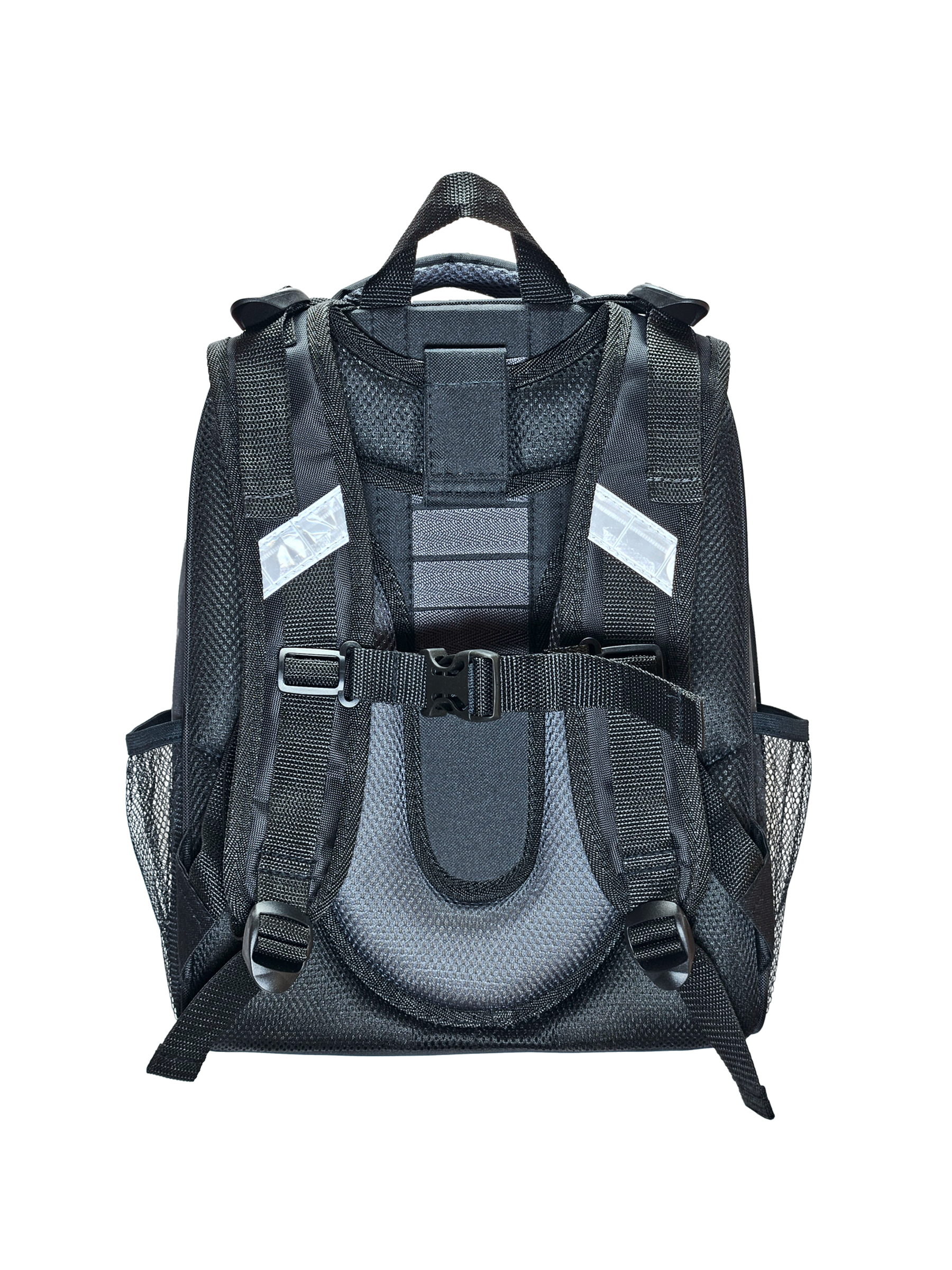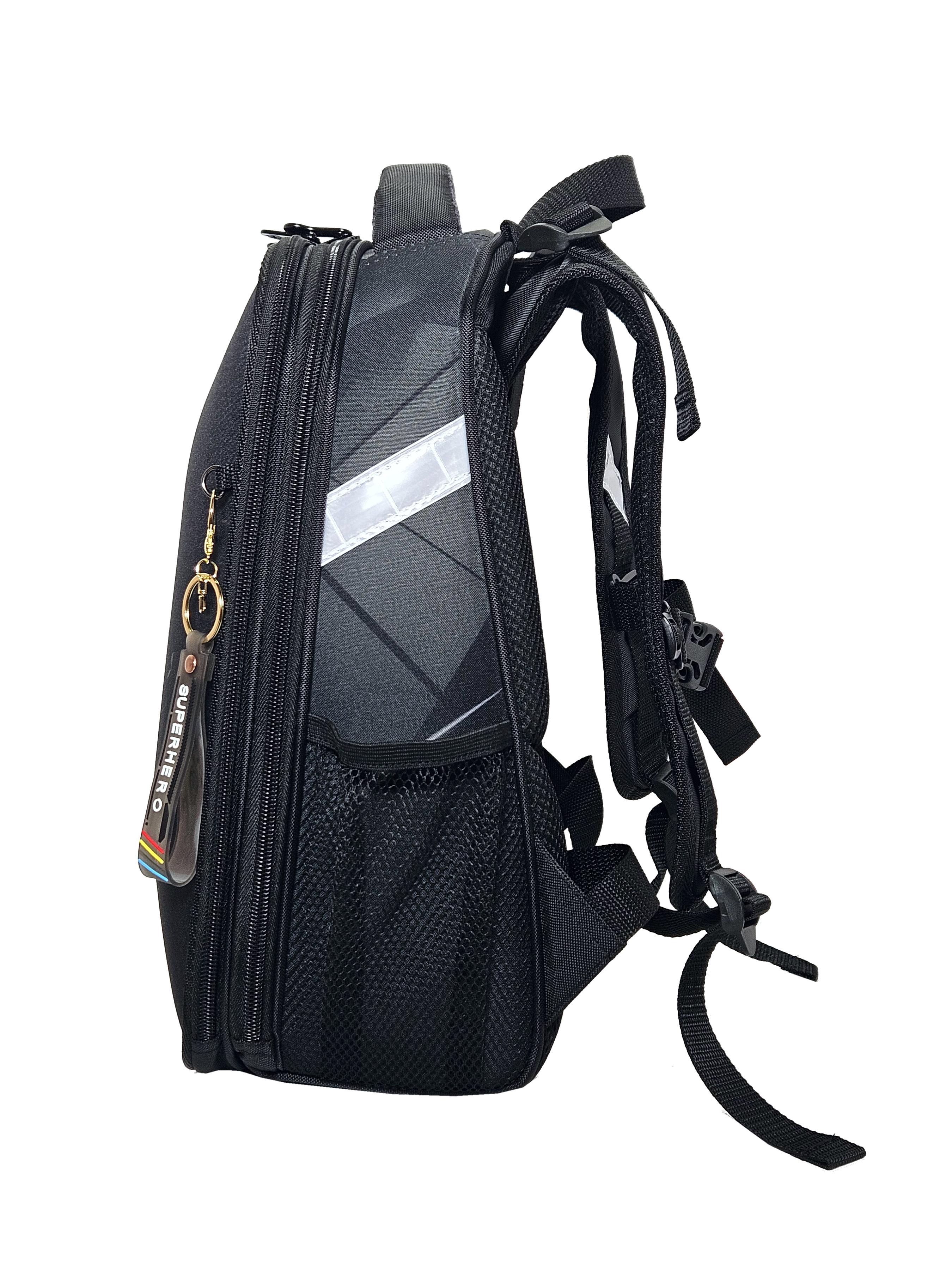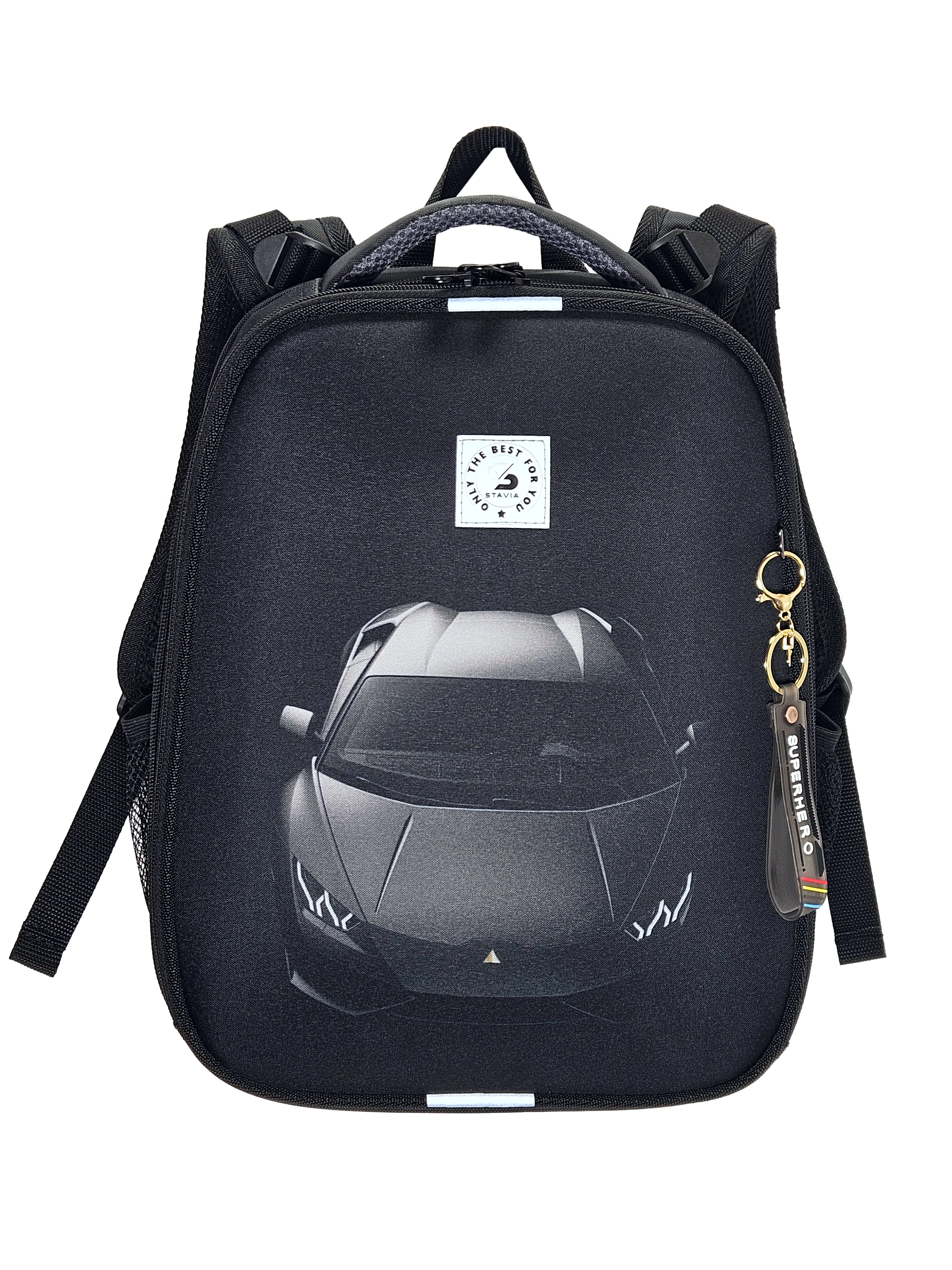Ранец изготовлен из формованного EVA-материала и высокопрочного непромокаемого полиэстера. Размер 30 х 38 х 16 см. Вес 900 г. Прочные формованные стенки и дно ранца позволяют надежно защитить содержимое от влаги, загрязнений и предотвращают его замятие. Ранец с двумя вместительными отделениями, закрывающимися на реверсивную пластиковую молнию с металлическими «бегунками»; в первом — «плавающие» перегородки для тетрадей и учебников, во втором – большой карман из сетки и карманы-органайзеры для канцелярских принадлежностей. Плотная спинка с анатомическими элементами дополнительно укреплена пластиком, сверху – дышащая трехслойная сетка. Лямки-маечка плотные, мягкие. Регулируются по длине и высоте, что позволяет без труда отрегулировать их по росту ребенка. Ранец снабжен надежным нагрудным фиксатором и двумя боковыми карманами из прочной сетки. Есть удобная мягкая ручка для переноски и дополнительная петлевая ручка для размещения ранца на крюке. На дне ранца есть две пластиковые ножки. В соответствии с требованиями к безопасности на дороге, ранец имеет светоотражающие элементы на лямках и корпусе. Приятный бонус — колечко-подвес для брелока. Брелок также прилагается.*
