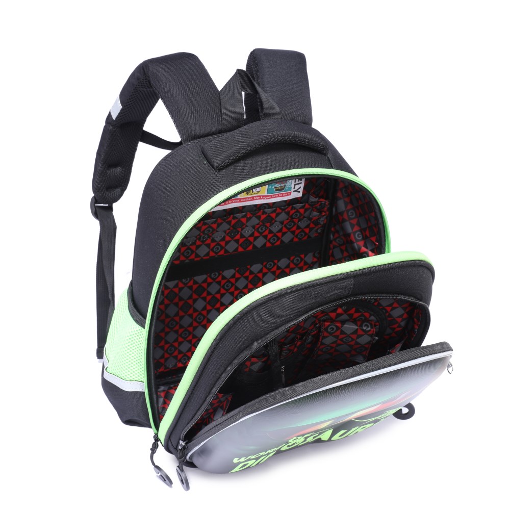 В наш рюкзак поместятся все школьные принадлежности. Основное отделение разбито на три отсека: для книг, тетрадей и папок до А4. В дополнительное помещается сменка (есть три кармашка для мелочей). В боковых карманах можно носить воду или перекус. Каждый предмет на своем месте.