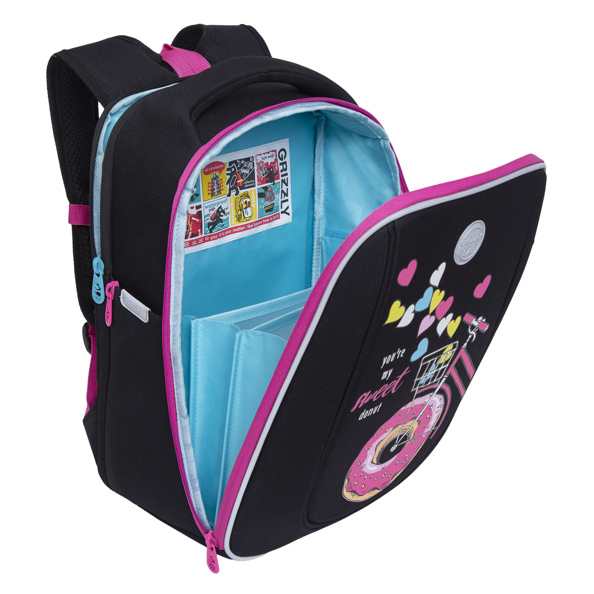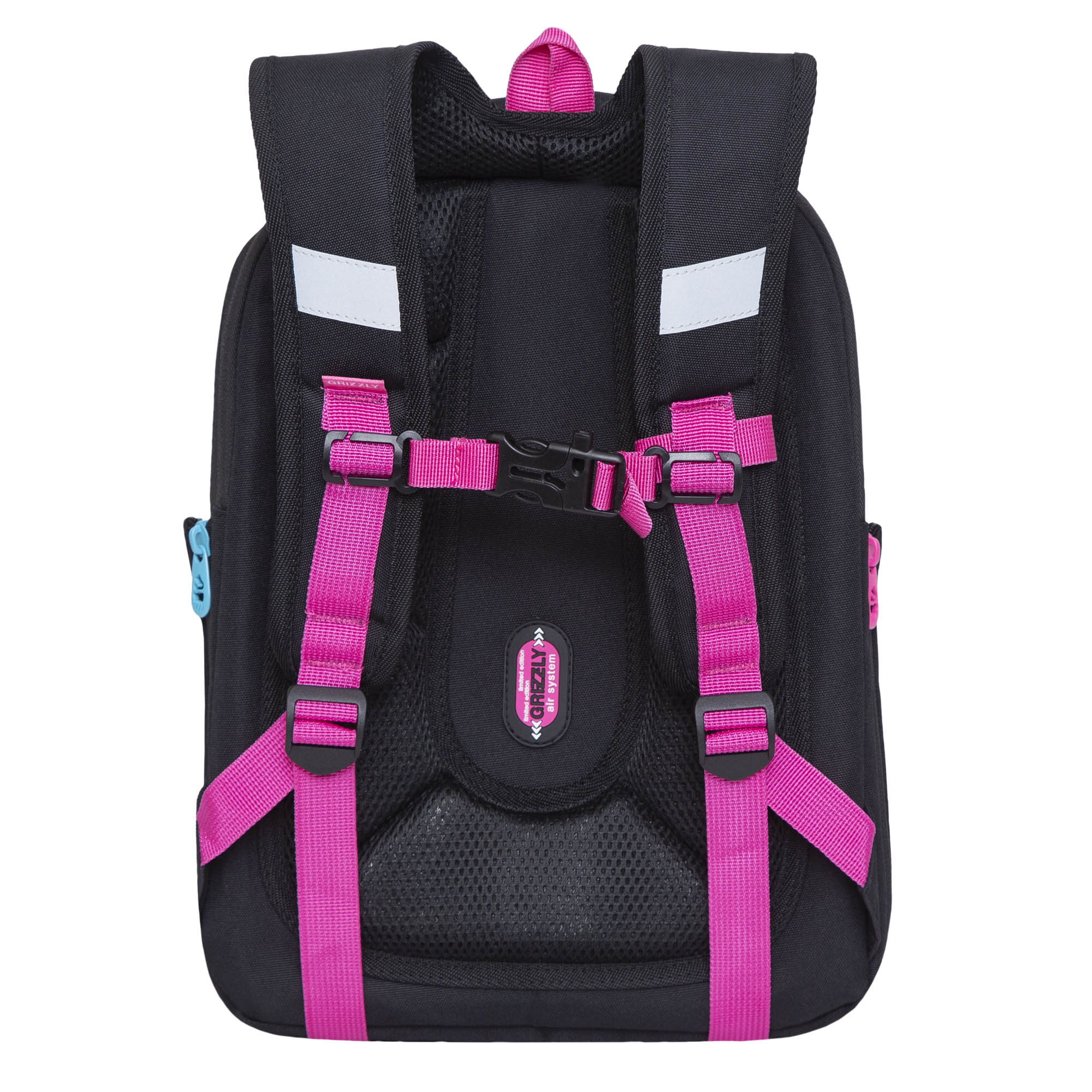 Ищете практичный, модный и стильный ранец? Советуем Вам обратить внимание на формованный ранец GRIZZLY серии RAf для детей школьного возраста ростом от 125 до 135 см. У ранца формованная лицевая часть, жесткая анатомическая спинка и жесткое дно на ножках. Содержимое надежно защищено. А еще такая конструкция равномерно распределяет нагрузку на спину. Чтобы не уставали руки и плечи, мы сделали широкие лямки и нагрудную стяжку со свистком. Конструкция ранца не деформируется при нагрузке и создает надежную защиту содержимого. У ранца два отделения. Основное отделение разбито на три отсека: для книг, тетрадей и папок А4, есть карман из сетки на молнии. Дополнительное жесткое отделение не даст помяться ценным вещам. Для безопасности в темное время суток  мы добавили со всех сторон  светоотражающие элементы. За счет водо- и грязеотталкивающей пропитки ранец долго остается как новый. Если он все же чем-то испачкался, мы рекомендуем ручную стирку в холодной воде.