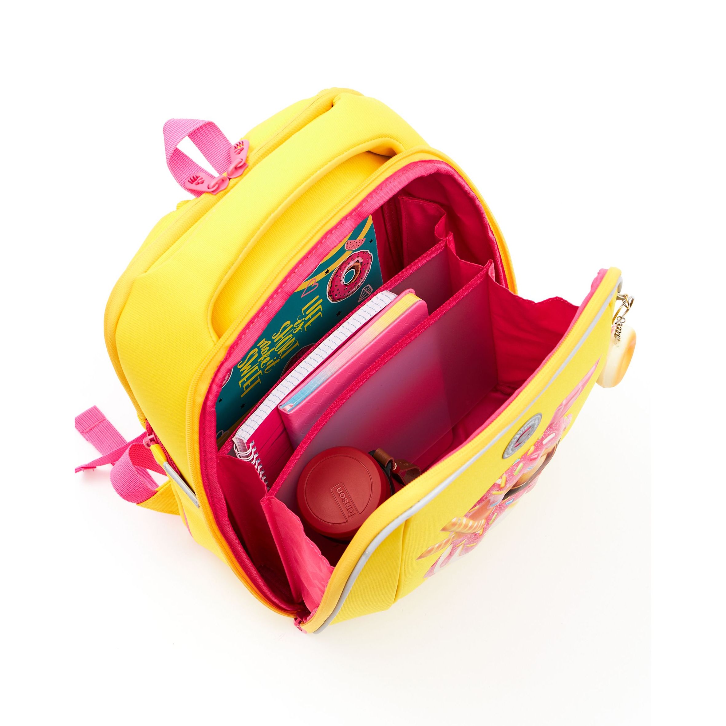 У школьного рюкзака формованная лицевая часть, жесткая анатомическая спинка и жесткое дно на ножках. Содержимое надежно защищено. А еще такая конструкция равномерно распределяет нагрузку на спину. Чтобы не уставали руки и плечи, мы сделали широкие лямки и нагрудную стяжку. Конструкция детской сумки не деформируется при нагрузке и создает надежную защиту содержимого. У школьного рюкзака два отделения. Основное отделение разбито на три отсека: для книг, тетрадей и папок А4, есть карман из сетки на молнии. Дополнительное жесткое отделение не даст помяться ценным вещам. Для безопасности в темное время суток мы добавили со всех сторон светоотражающие элементы. За счет водо- и грязеотталкивающей пропитки ранец долго остается как новый. Если он все же чем-то испачкался, мы рекомендуем ручную стирку в холодной воде.