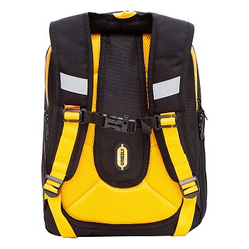 У школьного рюкзака формованная лицевая часть, жесткая анатомическая спинка и жесткое дно на ножках. Содержимое надежно защищено. А еще такая конструкция равномерно распределяет нагрузку на спину. Чтобы не уставали руки и плечи, мы сделали широкие лямки и нагрудную стяжку. Конструкция детской сумки не деформируется при нагрузке и создает надежную защиту содержимого. У школьного рюкзака два отделения. Основное отделение разбито на три отсека: для книг, тетрадей и папок А4, есть карман из сетки на молнии. Дополнительное жесткое отделение не даст помяться ценным вещам. Для безопасности в темное время суток мы добавили со всех сторон светоотражающие элементы. За счет водо- и грязеотталкивающей пропитки ранец долго остается как новый. Если он все же чем-то испачкался, мы рекомендуем ручную стирку в холодной воде.