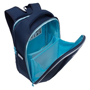 У школьного рюкзака формованная лицевая часть, жесткая анатомическая спинка и жесткое дно на ножках. Содержимое надежно защищено. А еще такая конструкция равномерно распределяет нагрузку на спину. Чтобы не уставали руки и плечи, мы сделали широкие лямки и нагрудную стяжку. Конструкция детской сумки не деформируется при нагрузке и создает надежную защиту содержимого. У школьного рюкзака два отделения. Основное отделение разбито на три отсека: для книг, тетрадей и папок А4, есть карман из сетки на молнии. Дополнительное жесткое отделение не даст помяться ценным вещам. Для безопасности в темное время суток мы добавили со всех сторон светоотражающие элементы. За счет водо- и грязеотталкивающей пропитки ранец долго остается как новый. Если он все же чем-то испачкался, мы рекомендуем ручную стирку в холодной воде.