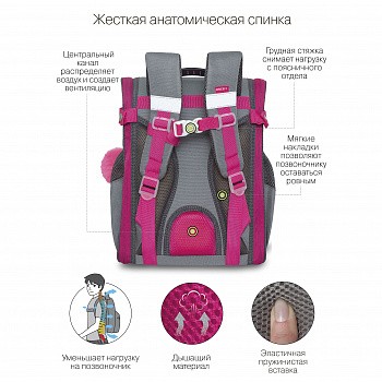 Что самое главное при  выборе ранца? Конечно жесткость конструкции, эргономичная спинка и удобные широкие лямки, которые сохраняют осанку здоровой. Мы разработали легкий ранец GRIZZLY серии RAl для детей школьного возраста с эргономической спинкой. Ранец рассчитан на рост от 120 до 130 см. Жесткая конструкция, эргономичная спинка, лямки анатомической формы и нагрудная стяжка со свистком равномерно распределяют вес по спине ребенка. Ранец полностью раскладывается. Жесткая конструкция не деформируется при  нагрузке и создает надежную защиту содержимого. У ранца одно большое отделение с разделителем для учебных пособий формата А4, передний карман на молнии  для мелочей, твердое  дно с резиновыми ножками и два вместительных боковых кармана. Со всех сторон есть отражатели — ребенка в темноте точно заметят. За счет водо- и грязеотталкивающей пропитки ранец  долго остается как новый. Если он все же чем-то испачкался, мы рекомендуем ручную стирку в холодной воде. С уважением, команда GRIZZLY