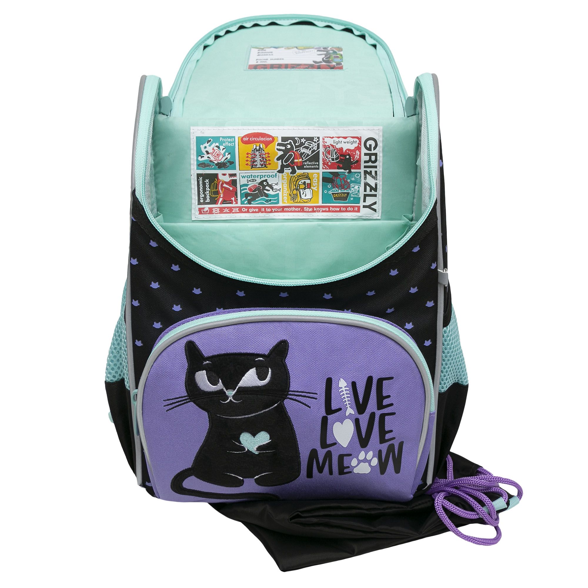 Ищите компактный, но при этом вместительный ранец для первоклассника? Тогда Вам подойдет суперлегкий рюкзак GRIZZLY серии RAm для детей школьного возраста ростом от 120 до 130 см. Жесткая конструкция ранца, анатомическая спинка, вентилируемые лямки и грудная стяжка равномерно распределяют вес по спине ребенка. Жесткое дно и боковины не деформируются при нагрузке и создают надежную защиту содержимого. У школьного портфеля одно большое отделение с разделителем для учебных пособий формата А4, все лежит на своих местах. Рюкзак широко открывается, обеспечивая легкий доступ к содержимому. У него есть фронтальный карман на молнии для разных мелочей, удобная ручка и два вместительных боковых кармана. В комплекте к детской сумке прилагается мешок для обуви. Вечером ребенка точно заметят водители, т.к. со всех сторон есть отражатели. За счет водо- и грязеотталкивающей пропитки ранец долго остается как новый. Если он все же чем-то испачкался, мы рекомендуем ручную стирку в холодной воде. С уважением, команда GRIZZLY
