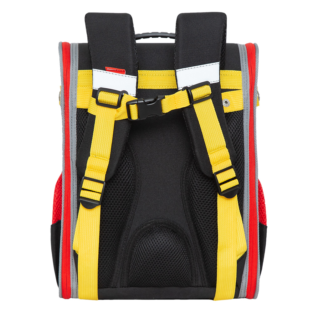 Легкий ранец GRIZZLY серии RAn для детей школьного возраста с эргономической спинкой. Ранцы этой серии имеют сертификат «Ранец профилактический с эргономической спинкой». Жесткая конструкция ранца, эргономичная спинка, лямки анатомической формы и нагрудная стяжка равномерно распределяют вес по спине ребенка. Ранец полностью раскладывается. Жесткая конструкция не деформируется при нагрузке и создает надежную защиту для содержимого. У ранца одно большое отделение с разделителем для учебных пособий формата А4 с фиксирующей резинкой. У ранца есть фронтальный карман на молнии, укрепленное дно с резиновыми ножками, удобная ручка и два вместительных боковых кармана. Двунаправленные реверсные молнии с брендированными пуллерами на замках позволяют легко открывать и закрывать ранец. Светоотражающие элементы с 4-х сторон обеспечивают дополнительную безопасность. Материал ранца с водо- и грязеотталкивающей пропиткой.  К ранцу прилагается обучающая брошюра по программе «GRIZZLY Здоровая Спина».
