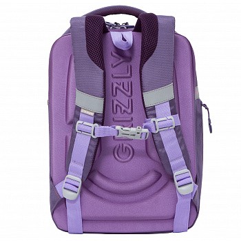 Встречайте нашу новинку! Новый формованный ранец GRIZZLY серии Rap для детей школьного возраста ростом от 125 до 135 см. У ранца формованная лицевая часть, новая жесткая анатомическая спинка и жесткое дно на ножках. Содержимое надежно защищено. А еще такая конструкция равномерно распределяет нагрузку на спину. Чтобы не уставали руки и плечи, мы сделали широкие лямки и нагрудную стяжку со свистком. Конструкция ранца не деформируется при нагрузке и создает надежную защиту содержимого. У ранца два отделения. Основное отделение  разбито на три отсека: для книг, тетрадей и папок А4, есть карман на молнии. Боковой кармашек на молнии для бутылочки с водой или разных мелочей. Для безопасности в темное время суток  мы добавили со всех сторон  светоотражающие элементы. За счет водо- и грязеотталкивающей пропитки ранец долго остается как новый. Если он все же чем-то испачкался, мы рекомендуем ручную стирку в холодной воде.