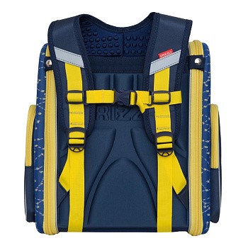 Светоотражающие элементы с 4-х сторон обеспечивают дополнительную безопасность. Жесткая анатомическая спинка и уникальные лямки из эластичного материала позволяют равномерно распределять нагрузку на спину и плечи ребенка. Лямки снабжены дополнительной нагрудной стяжкой.  Материал ранца с водо- и грязеотталкивающей пропиткой.  К ранцу прилагается обучающая брошюра по программе «GRIZZLY Здоровая Спина».